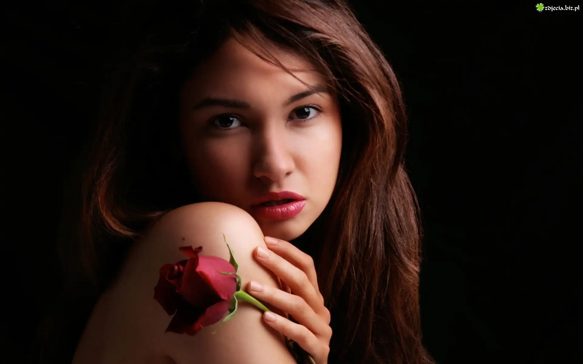 Zdjęcie Kobieta, Makijaż, Czerwona, Róża