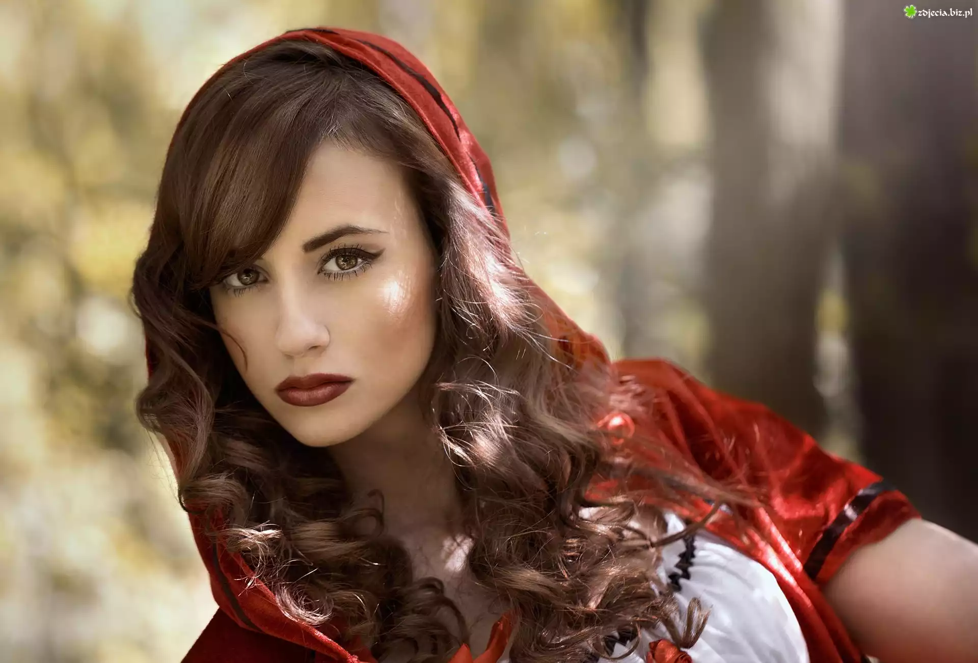Zdjęcie Kobieta, Makijaż, Czerwony, Kapturek