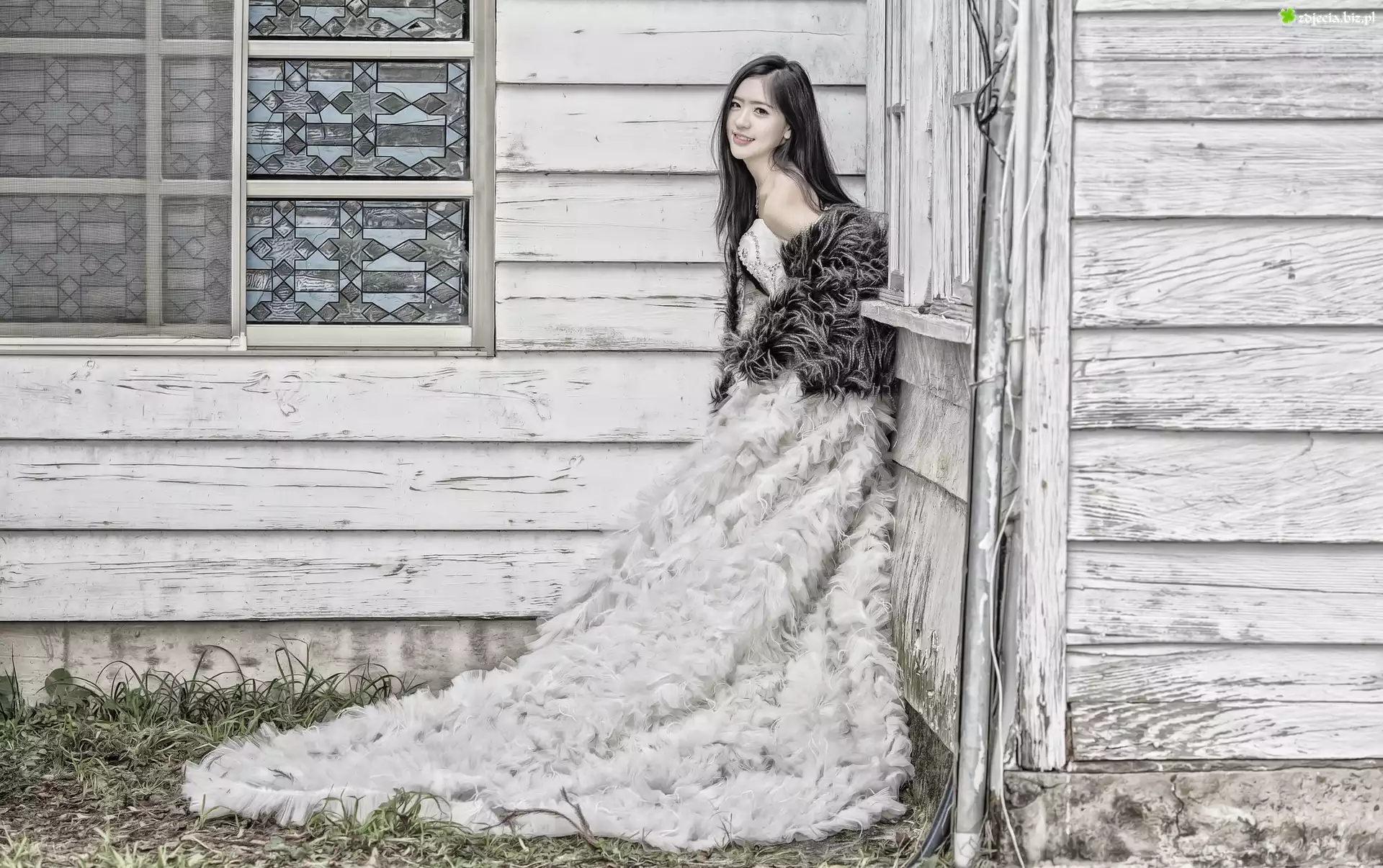 Zdjęcie, Kobieta, Azjatka, Długa, Suknia