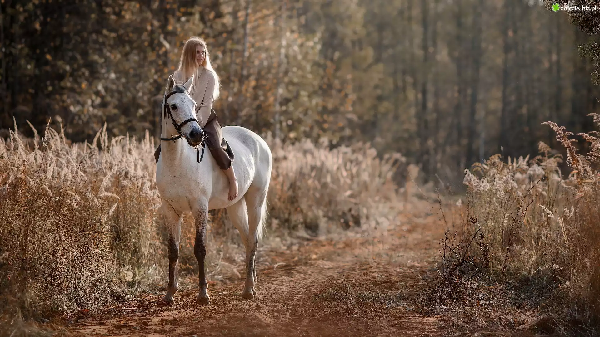 Zdjęcie, Kobieta, Blondynka, Koń, Droga, Trawa