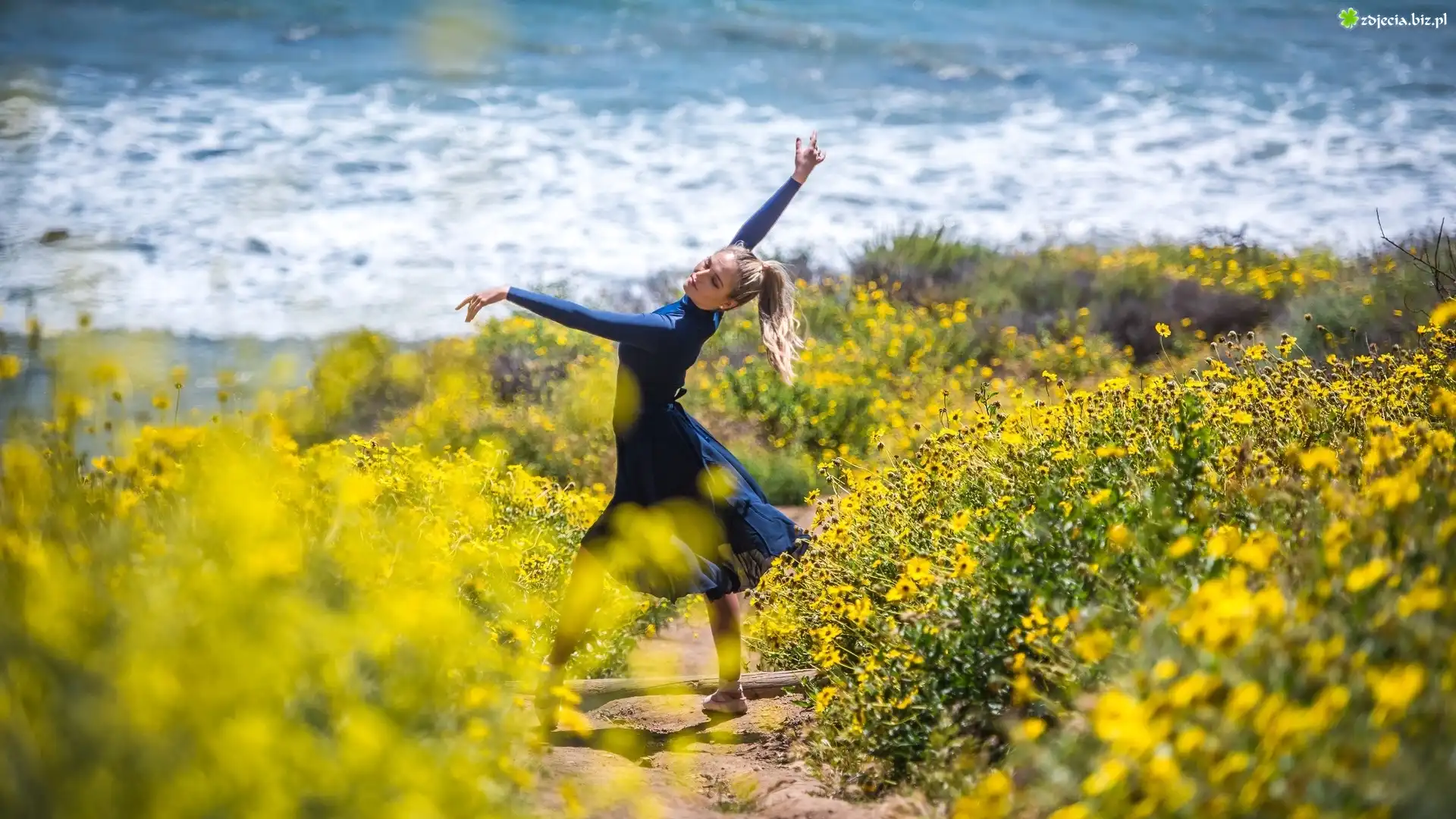 Zdjęcie Kobieta, Taniec, Kwiaty, Droga, Morze