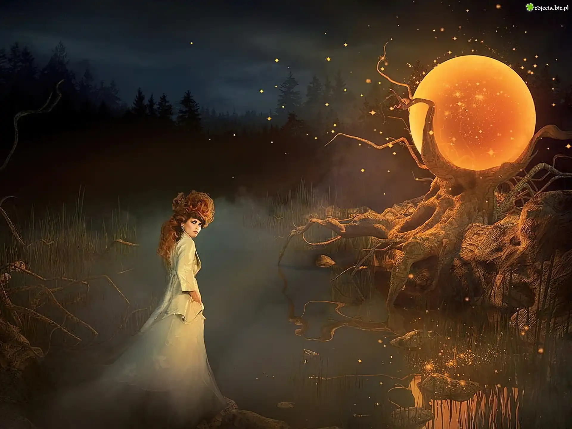 Zdjęcie Kobieta, Korzenie, Drzew, Księżyc