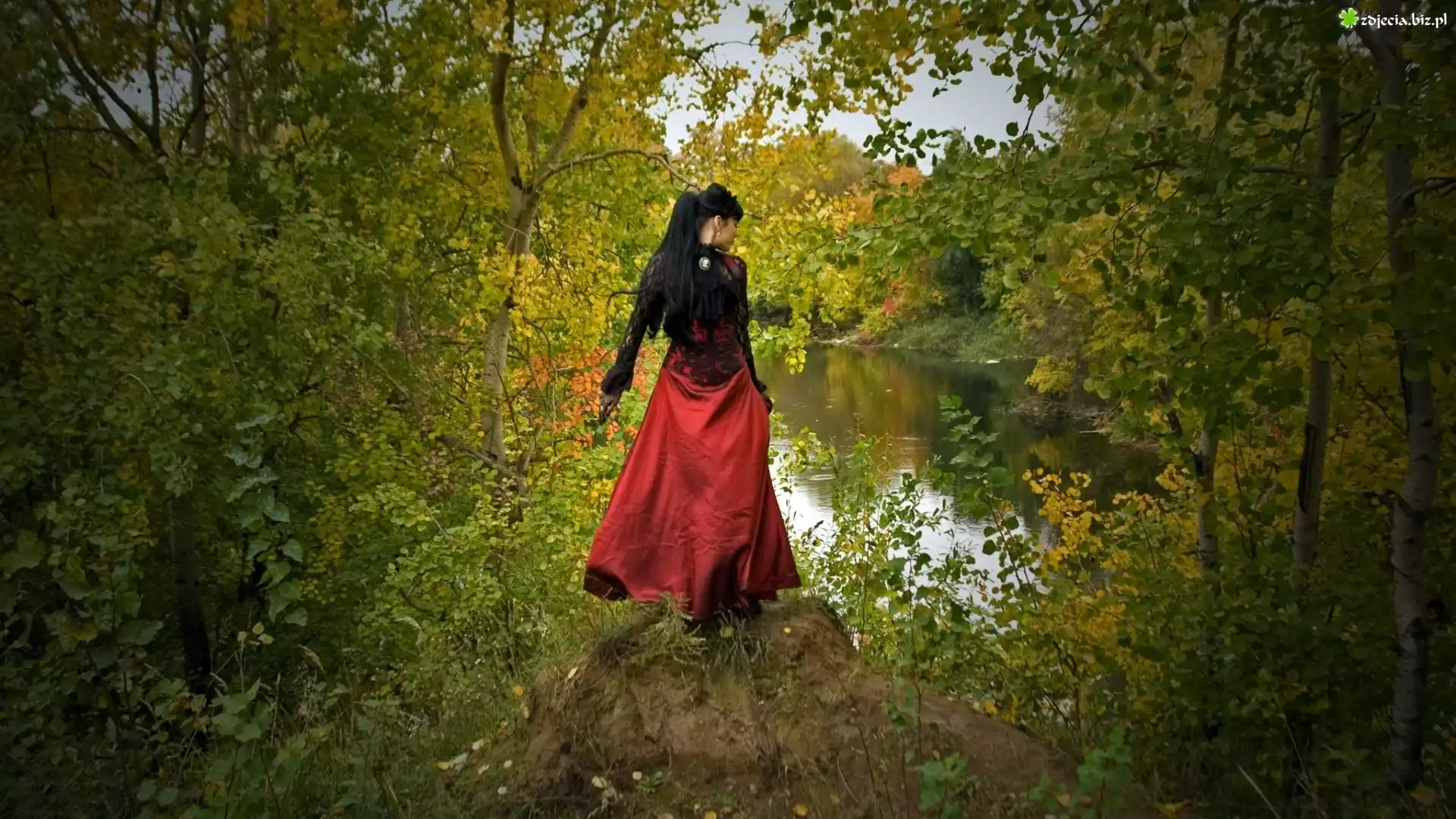 Zdjęcie Kobieta, Rzeka, Drzewa, Jesień