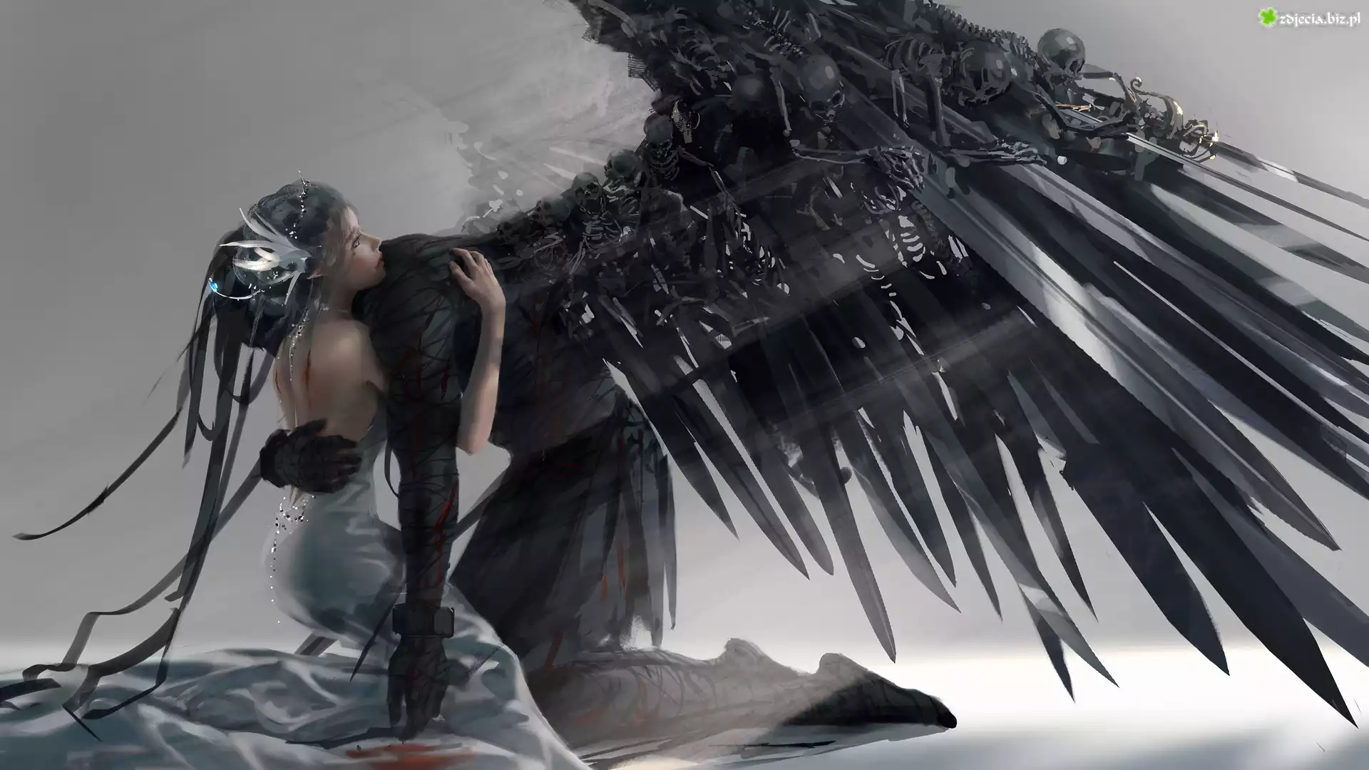 Zdjęcie, Grafika, Kobieta, Elf, Czarny, Zraniony, Anioł, Miecze, Fantasy