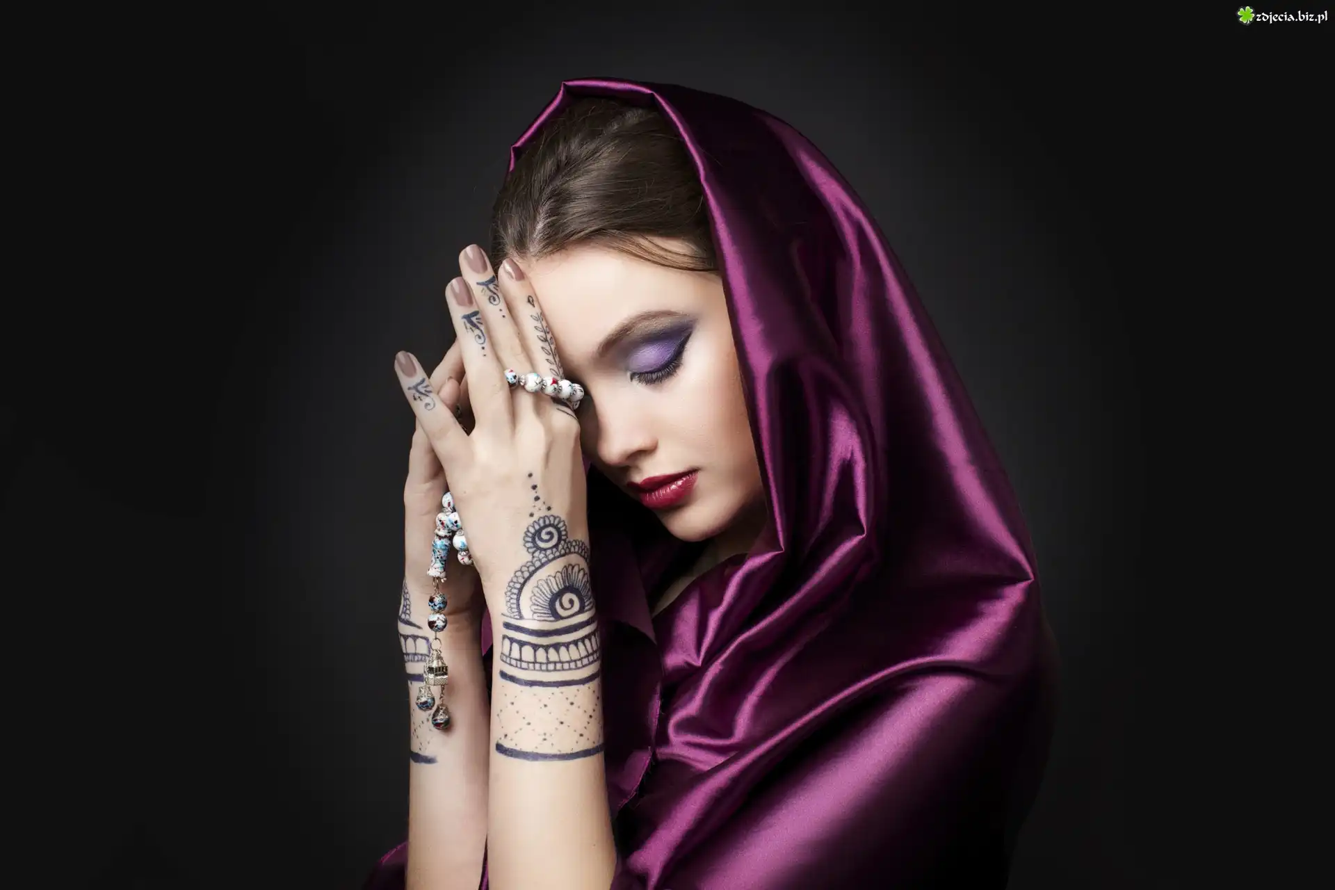 Zdjęcie Kobieta, Tatuaże, Makijaż, Fioletowa, Chusta