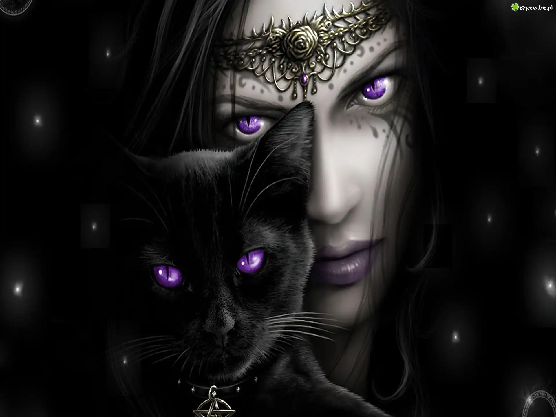 Zdjęcie Kobieta, Kot, Fioletowe, Oczy