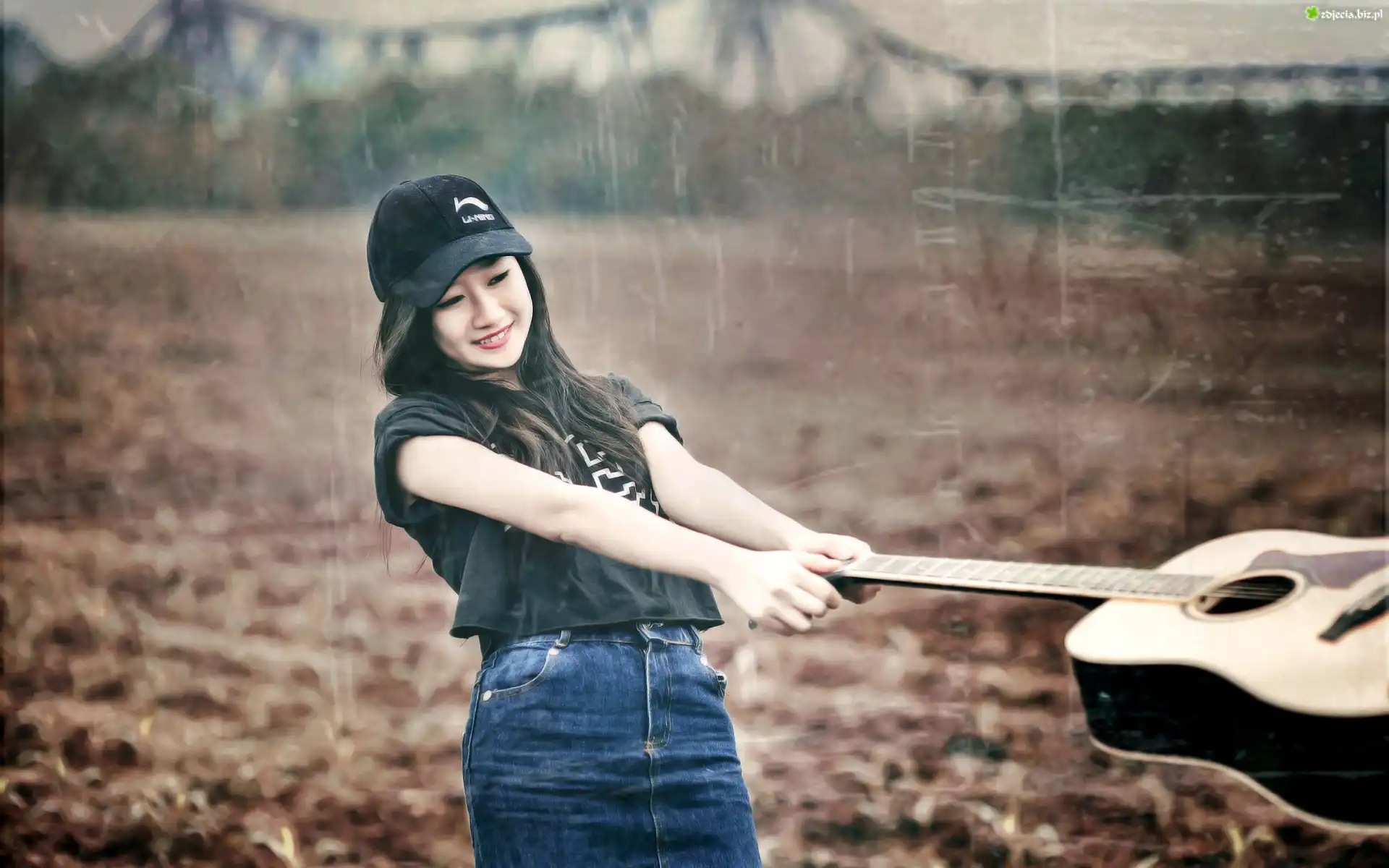 Zdjęcie Gitara, Kobieta, Uśmiech
