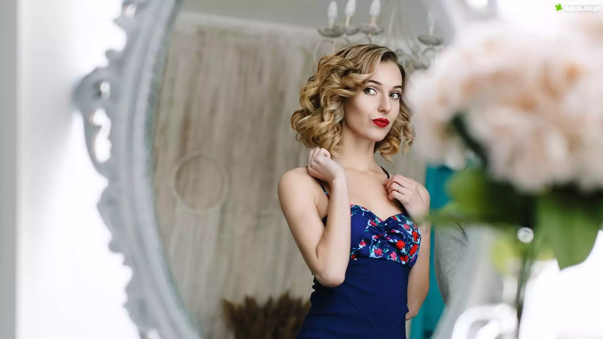 Zdjęcie, Kobieta, Blondynka, Granatowa, Sukienka