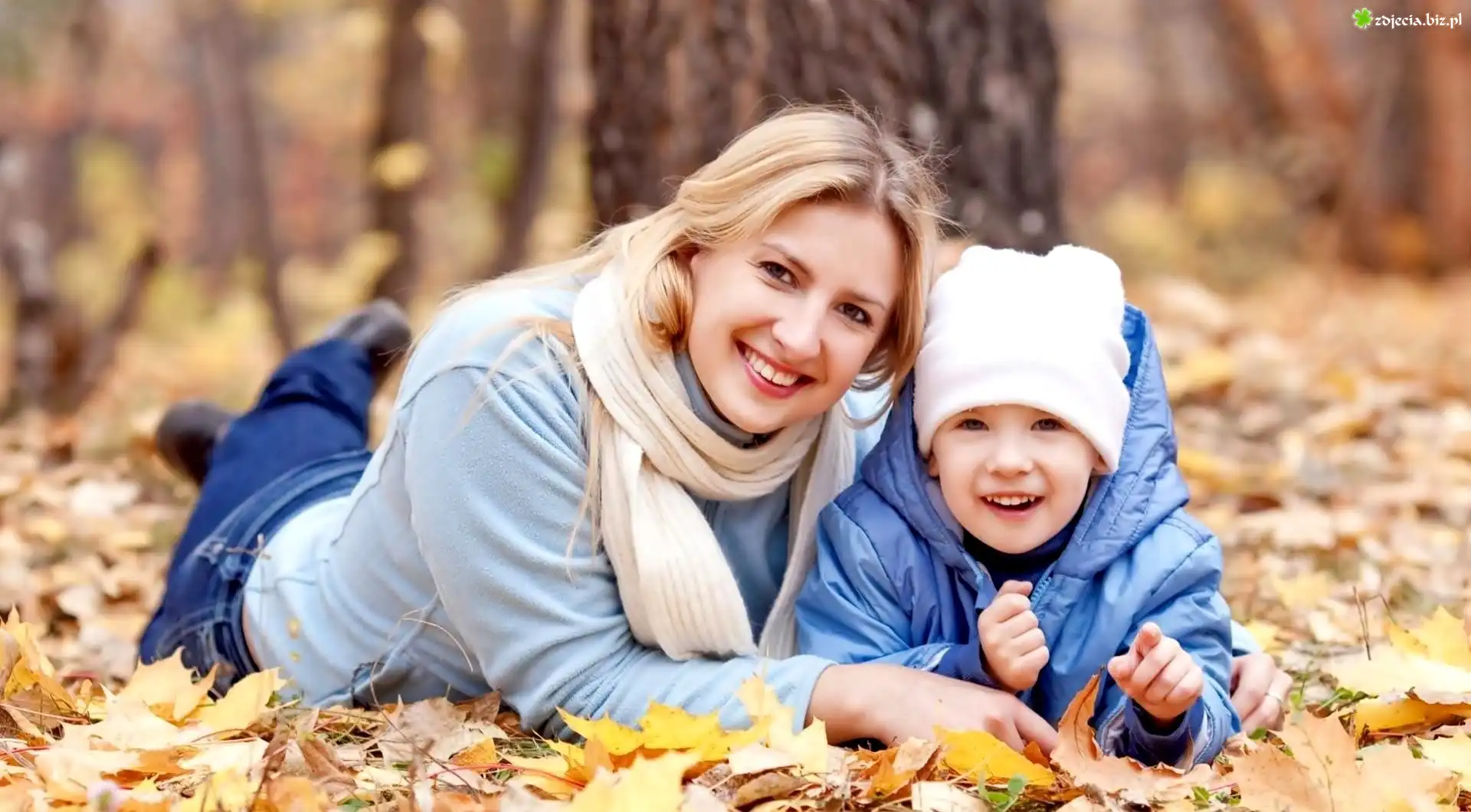 Zdjęcie Kobieta, Dziecko, Jesienne, Liście