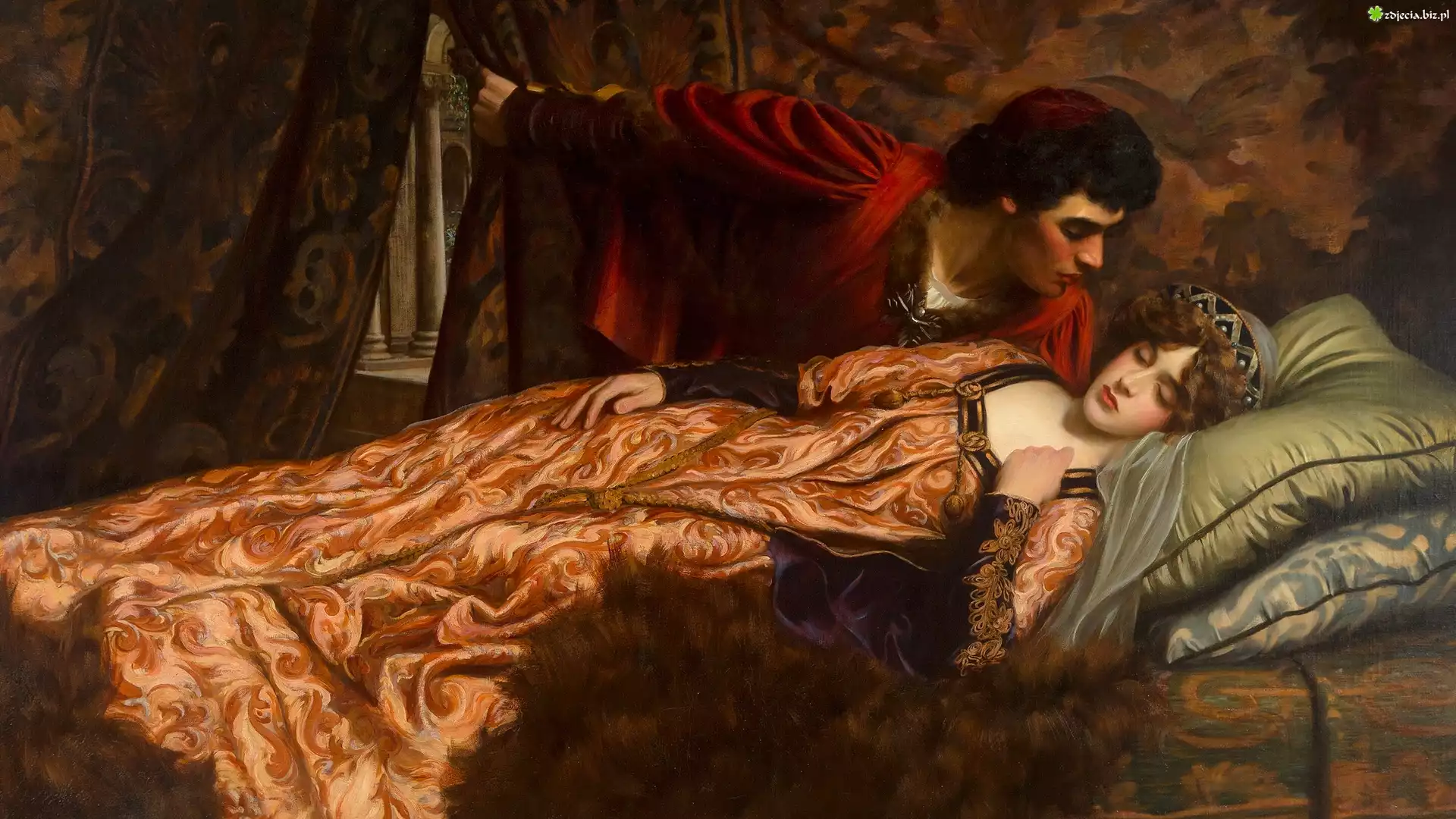 Zdjęcie Malarstwo, Obraz, John Frederick Harrison Dutton, Mężczyzna, Śpiąca, Kobieta