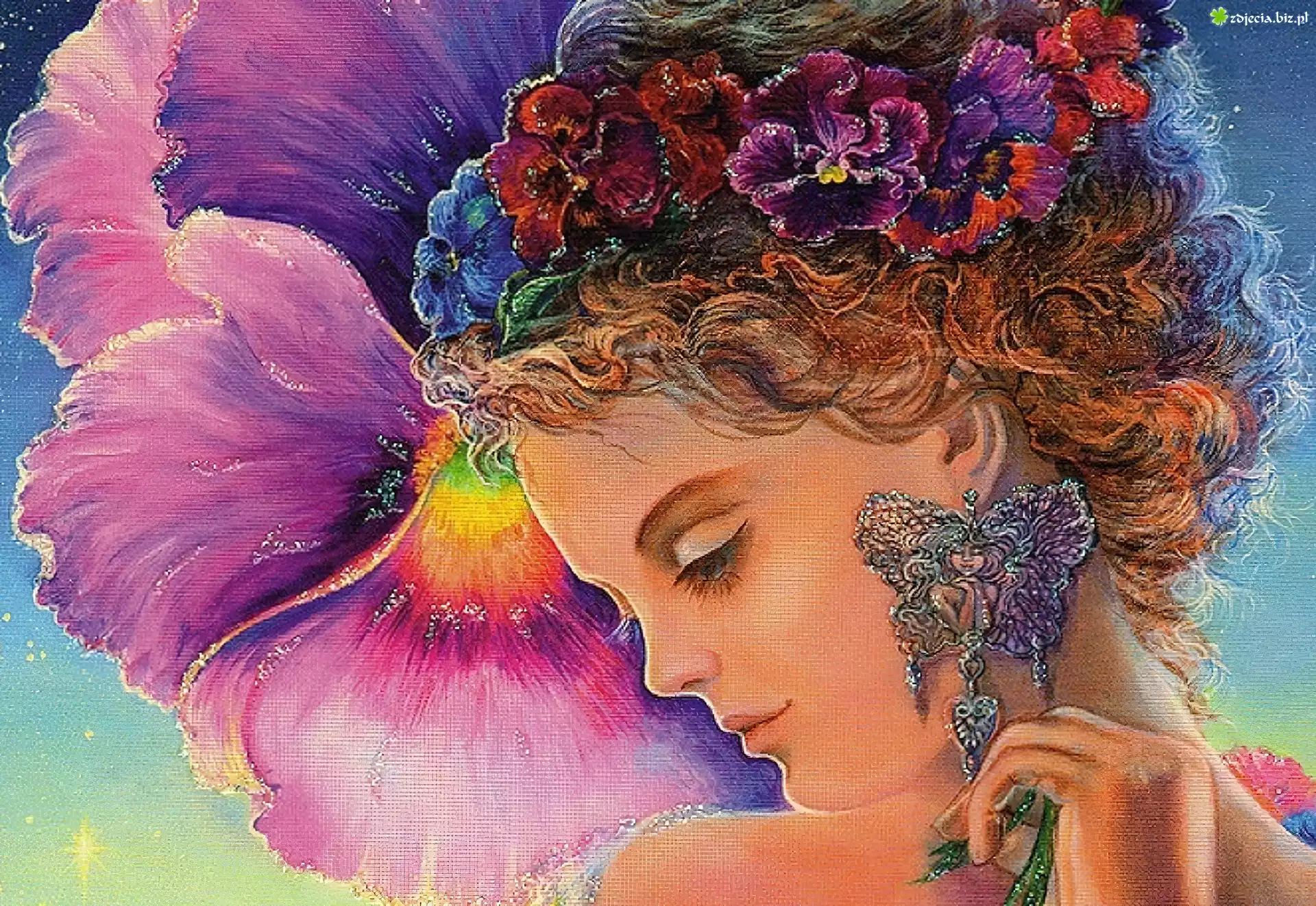 Zdjęcie Kobieta, Kolczyk, Kwiaty, Josephine Wall