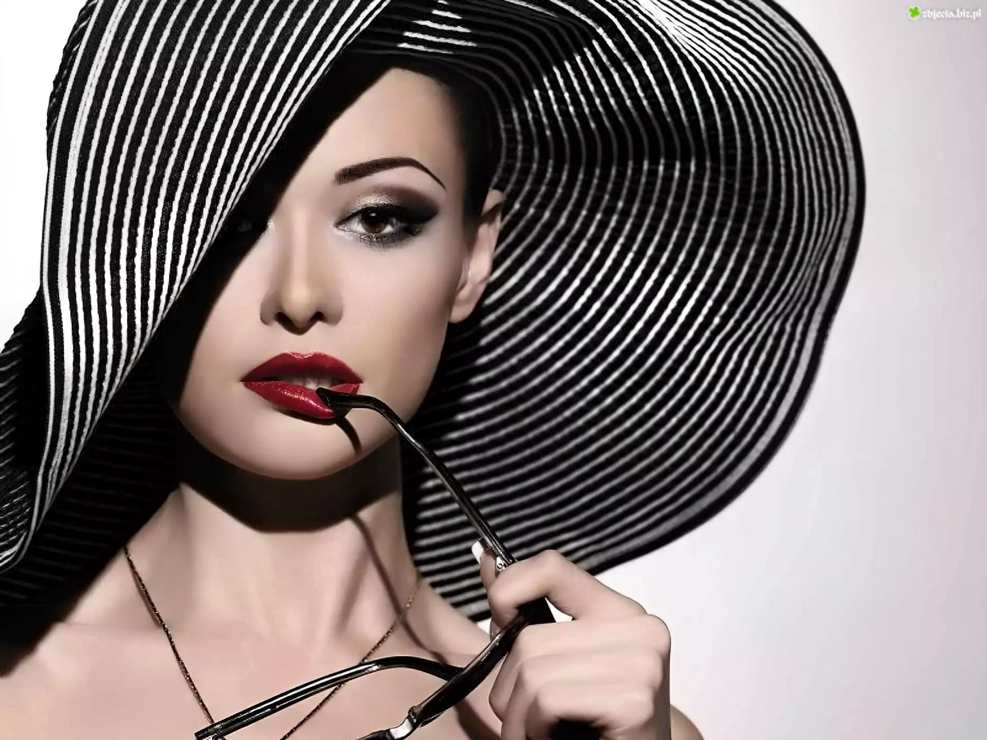 Zdjęcie Kobieta, Makijaż, Kapelusz, Okulary