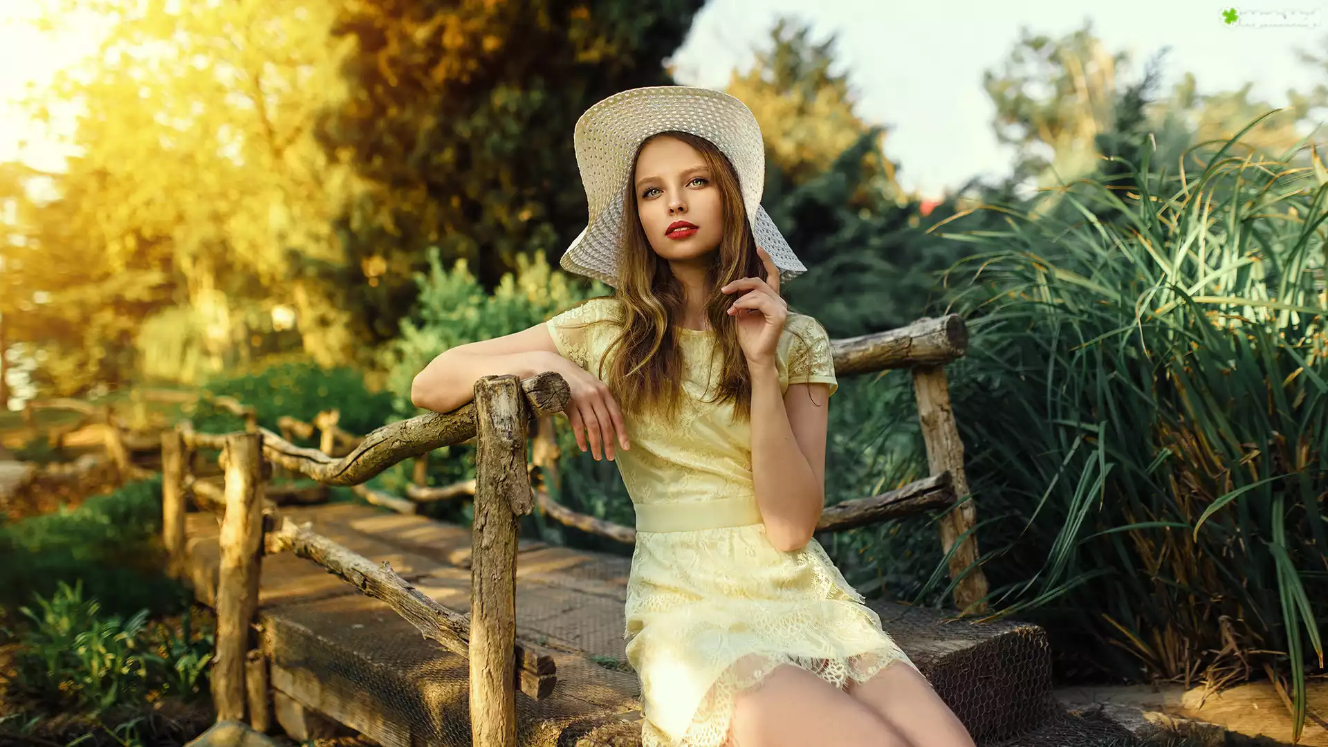 Zdjęcie Kobieta, Sukienka, Kapelusz, Most