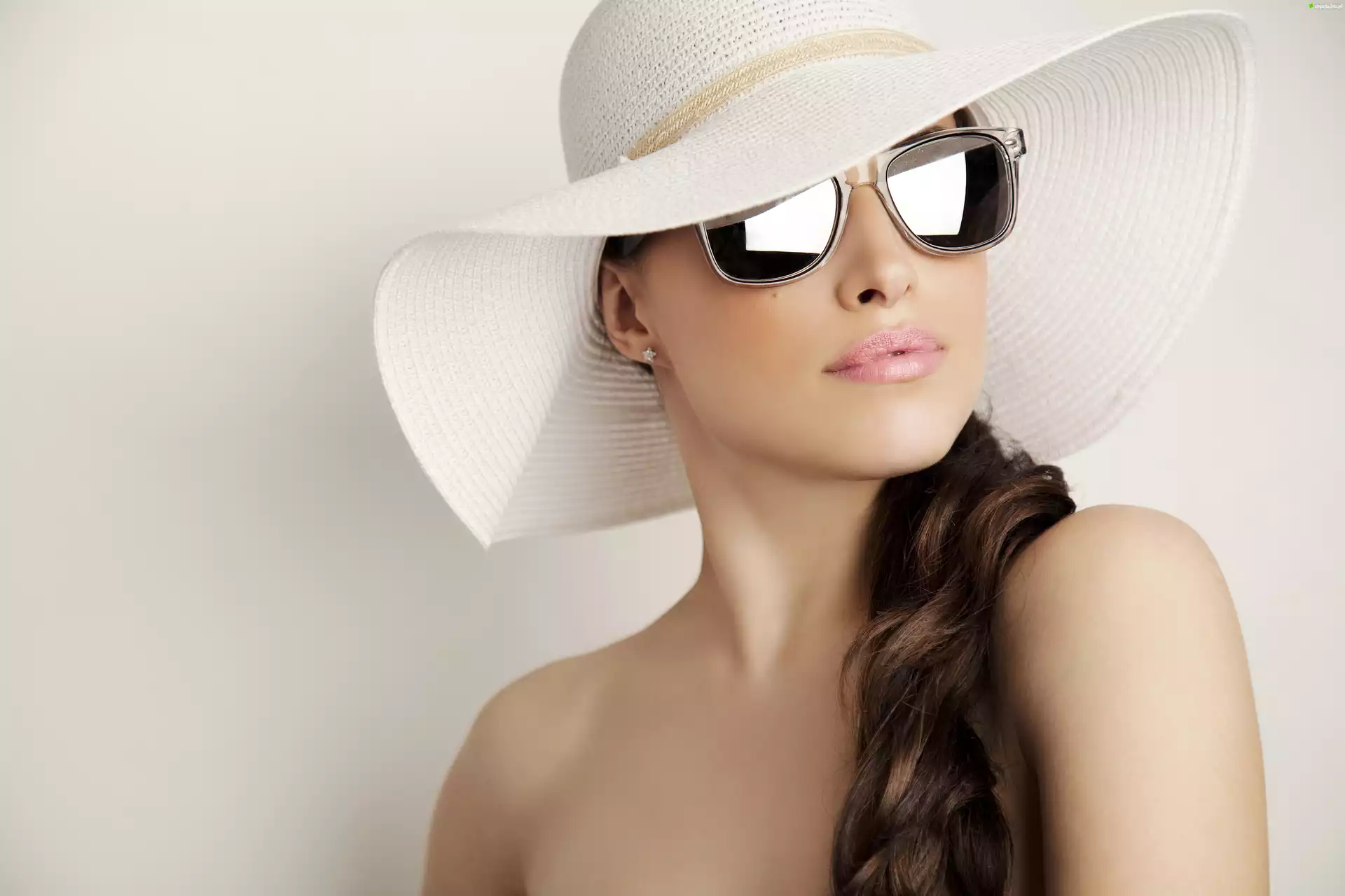Zdjęcie, Kobieta, Twarz, Kapelusz, Okulary