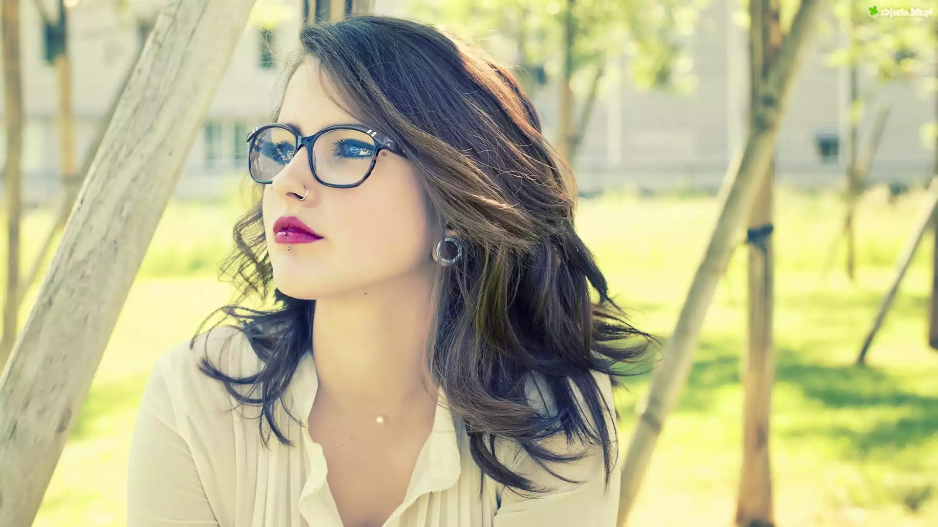 Zdjęcie, Kobieta, Brunetka, Makijaż, Kolczyk, Okulary