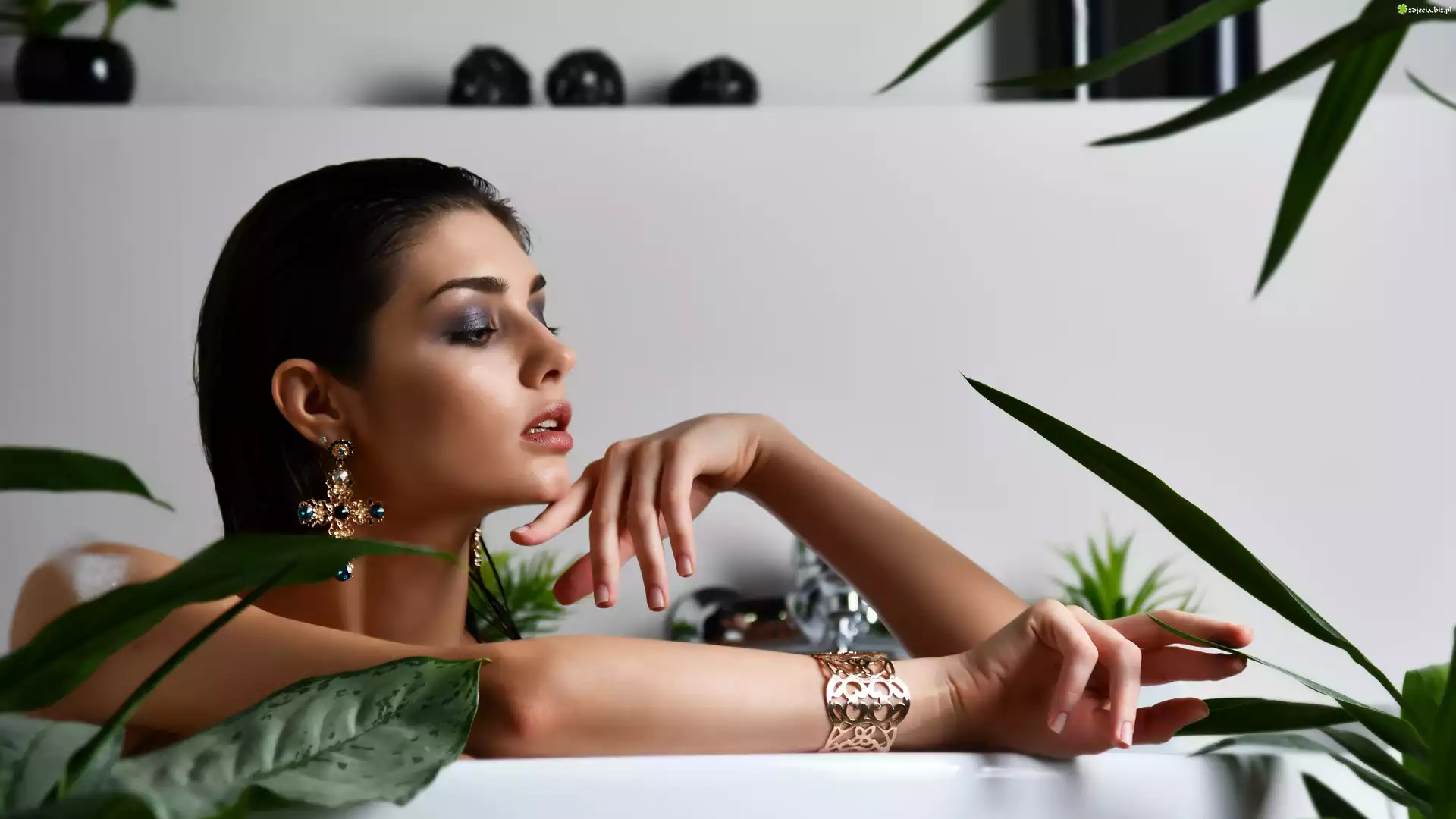 Zdjęcie Kobieta, Szatynka, Kolczyki, Bransoletka