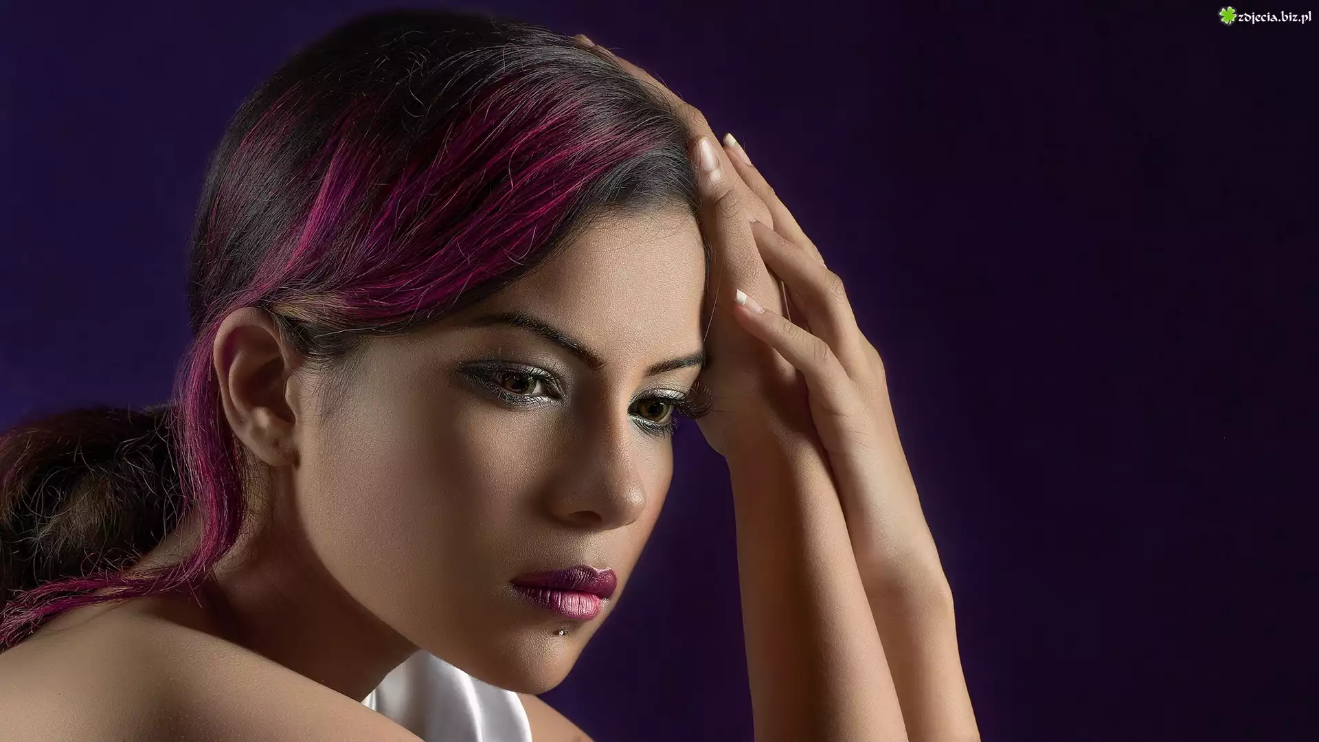 Zdjęcie Kobieta, Piercing, Makijaż, Kolorowe, Włosy