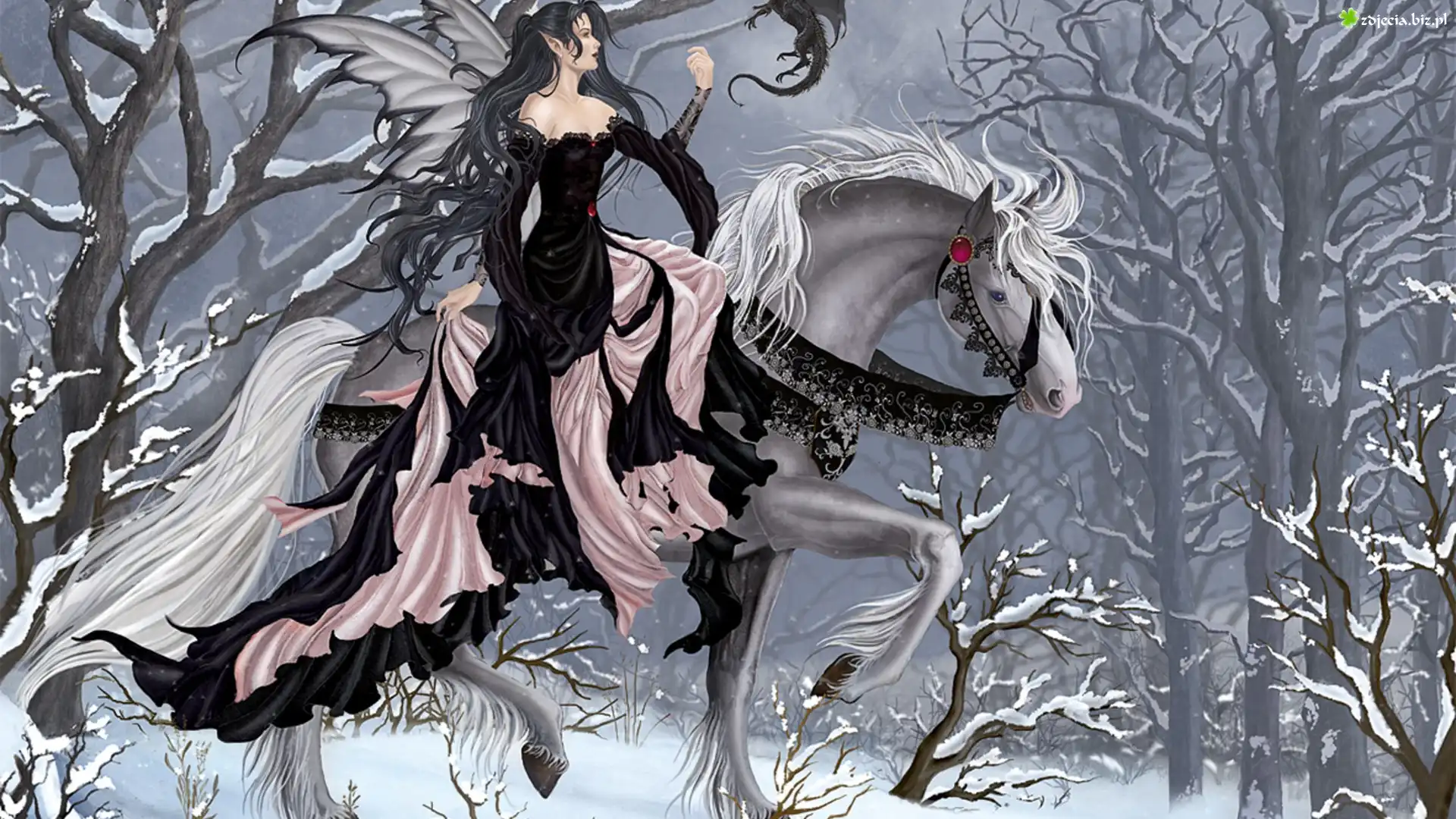 Zdjęcie Kobieta, Motyl, Koń, Smok