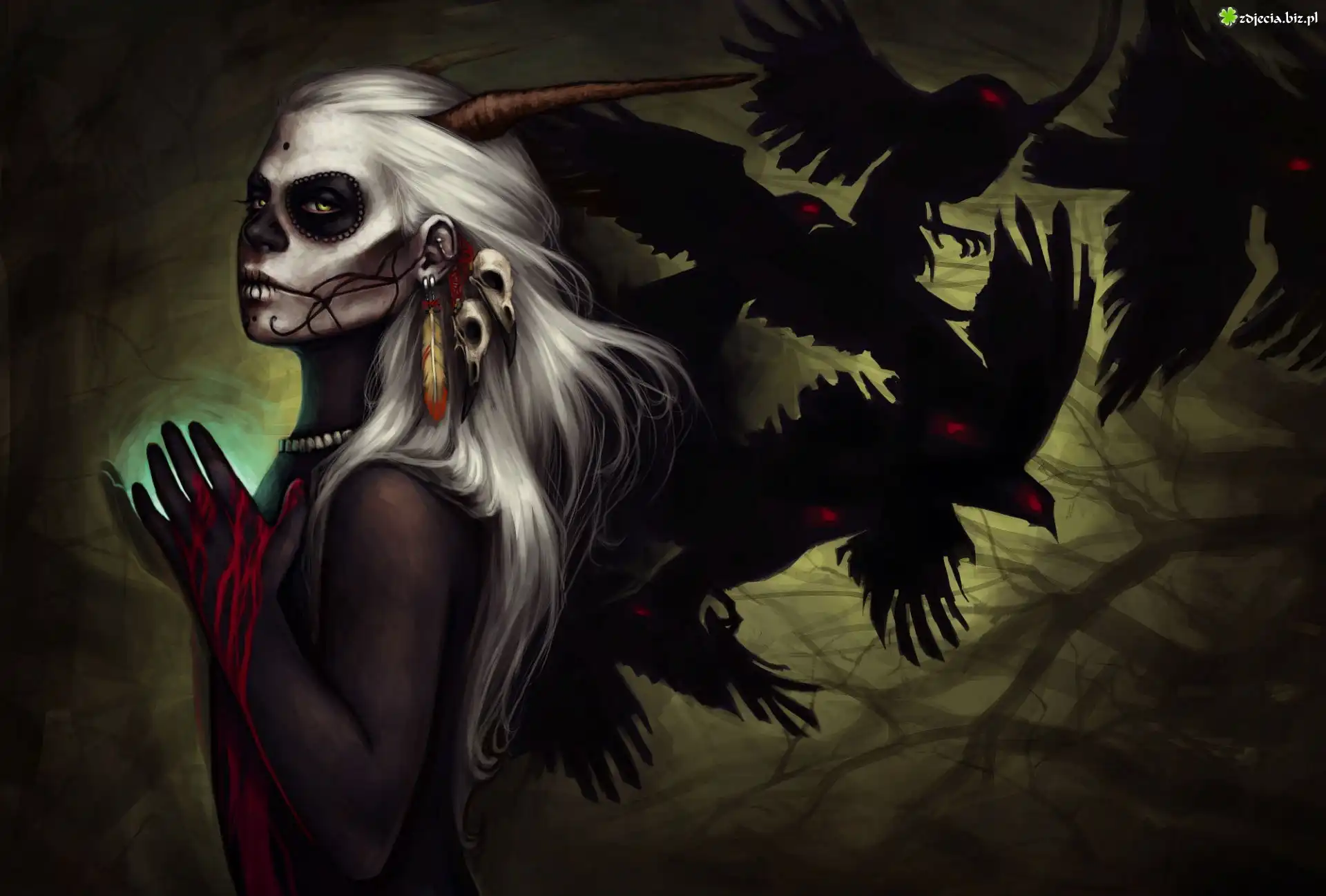 Czaszka, Czerwień, Dziura Dwie, Kolorowe, Czaszki Kobieta, Twarz, Folia Ręce, Szkło Zjawa, Ręka, Fiolka Demoniczna, Lalka Człowiek, Lustro, Przerażone, Odbicie Walka, Na, Śmierć, I, Życie Wściekły, Wilk Mroczna, Brama, Świata Kobieta, Szkielet, Dym, Kwiaty Twarze, Kobiet, Czaszka Postać, Mrok, Hieny, Ogień Twarz, Ręka