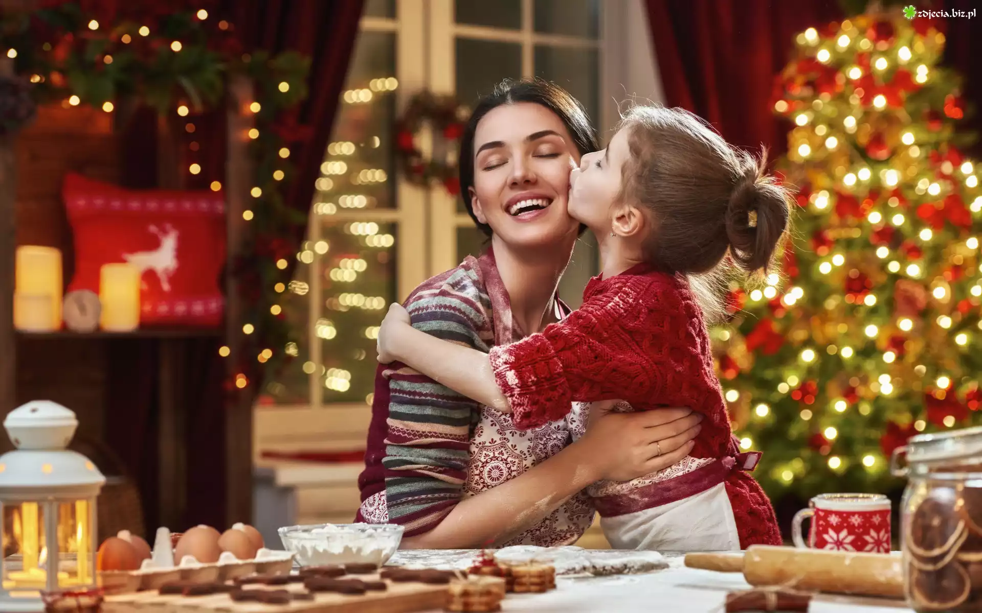 Zdjęcie Kobieta, Dziewczynka, Całus, Choinka, Kuchnia, Pieczenie