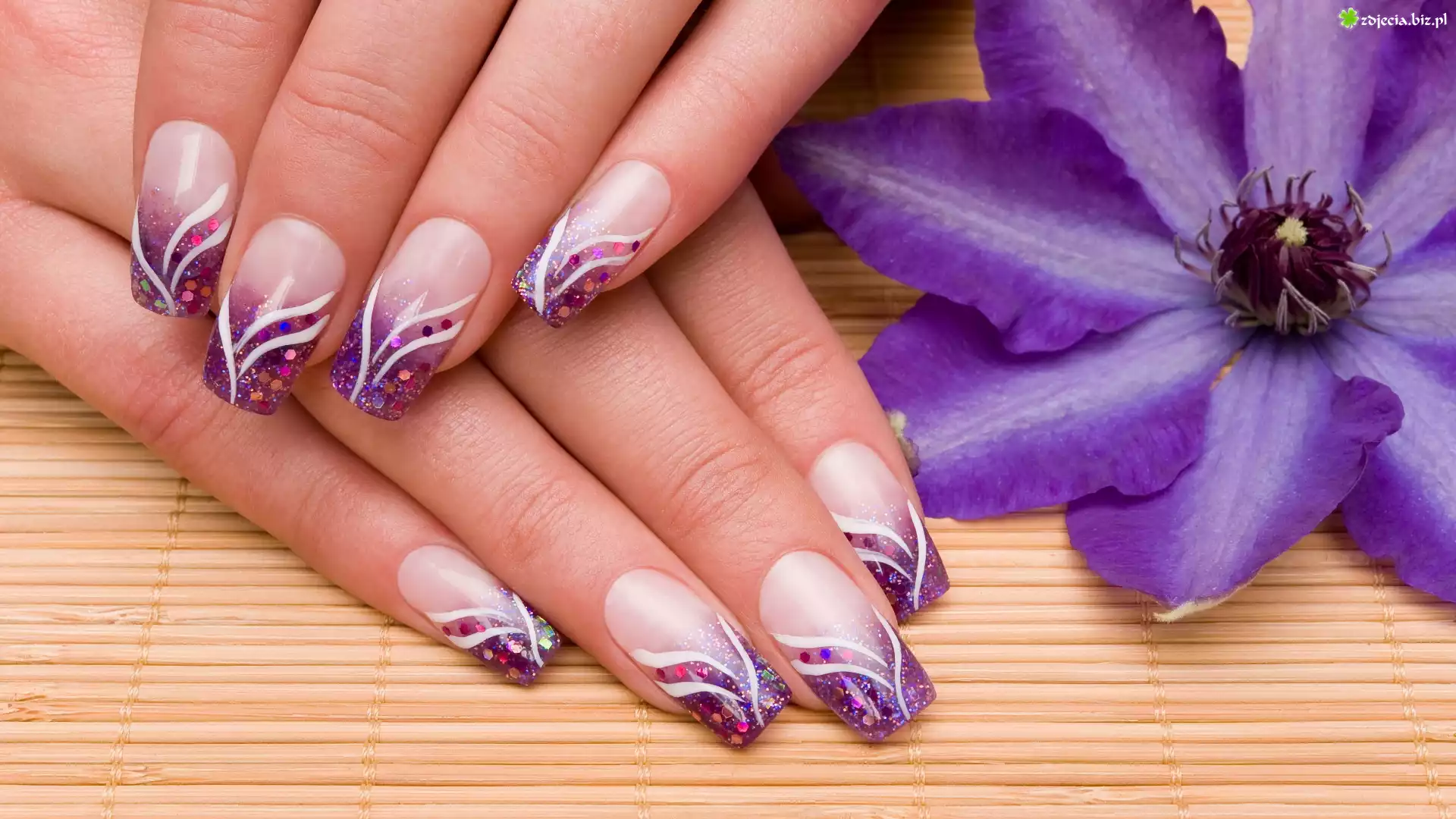 Zdjęcie Kobieta, Paznokcie, Manicure, Fioletowy, Kwiat, Powojnik