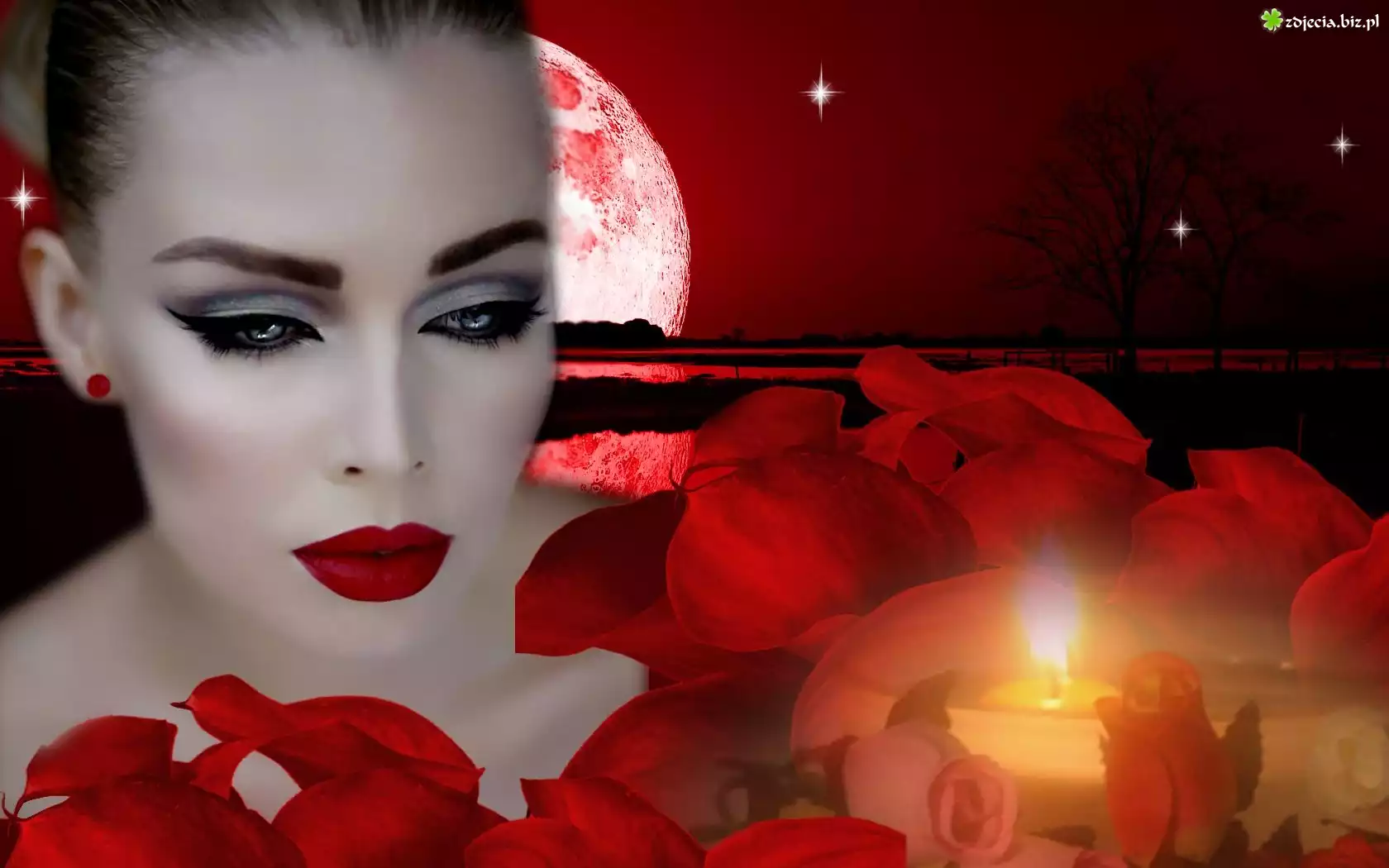 Zdjęcie Kobieta, Makijaż, Kwiaty, Świeca