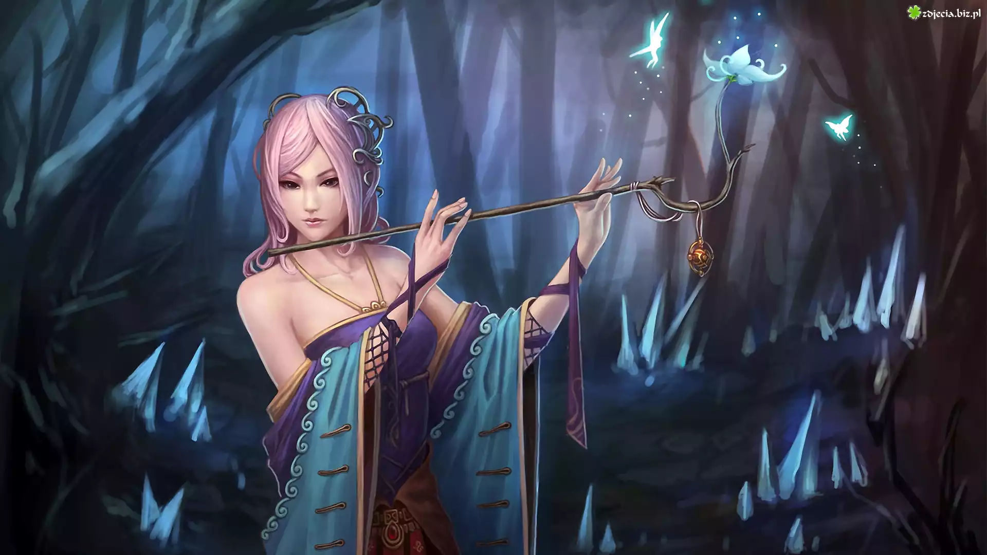 Zdjęcie Kobieta, Różdżka, Kwiaty, Las