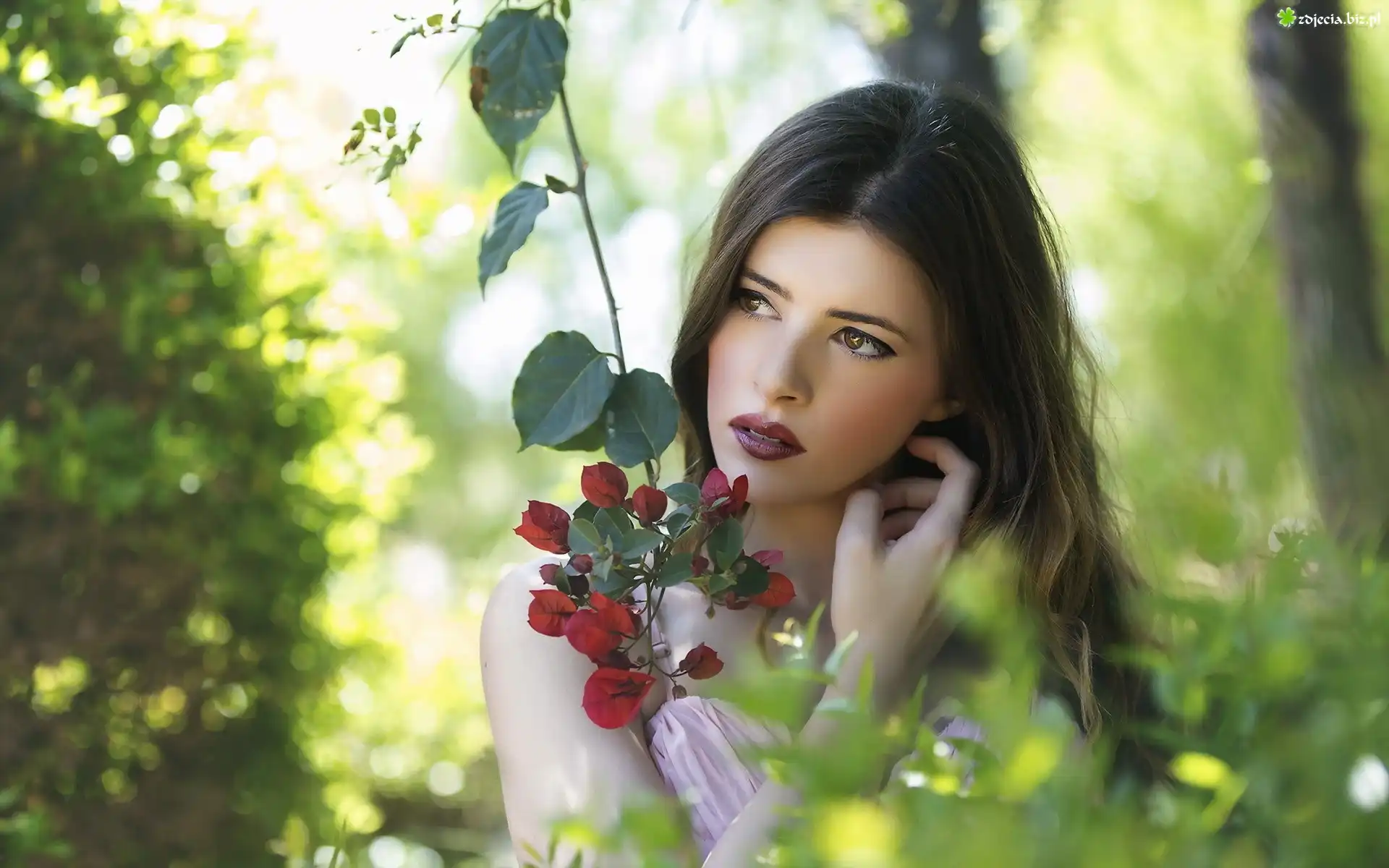 Zdjęcie Kobieta, Makijaż, Kwitnąca, Gałązka