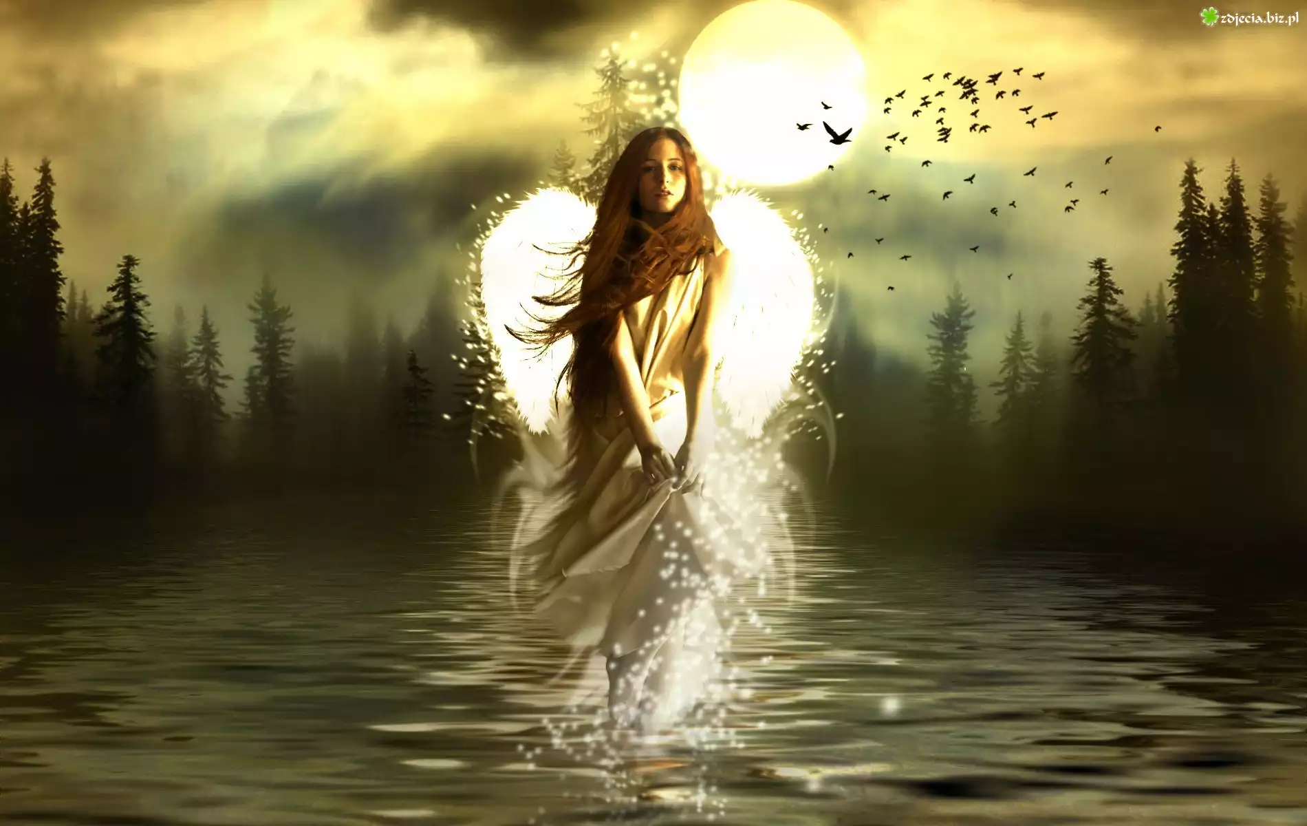 Zdjęcie Kobieta, Jezioro, Las, Fantasy