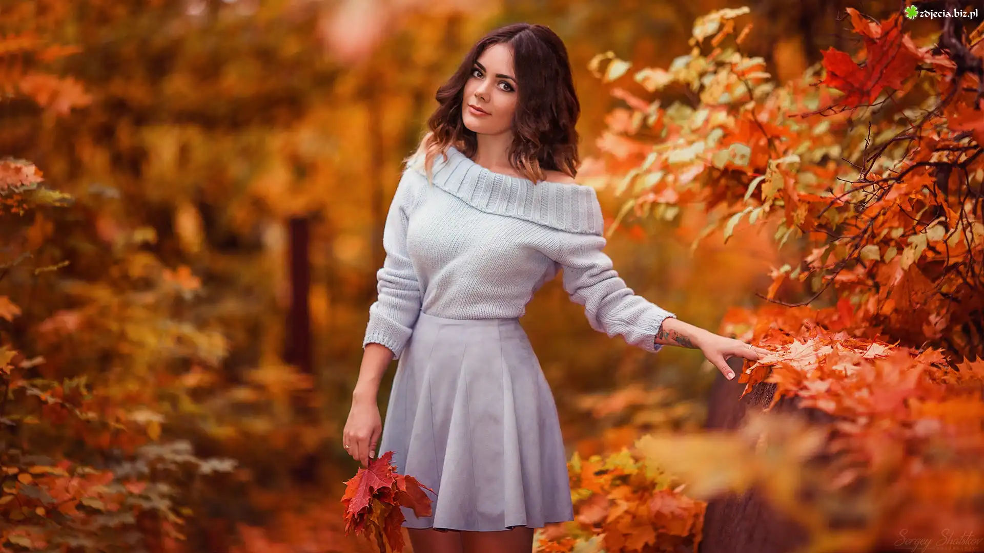 Zdjęcie Kobieta, Szatynka, Liście, Jesień