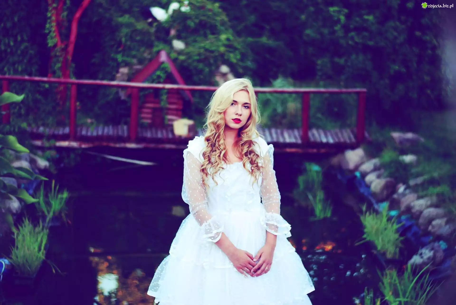 Zdjęcie, Kobieta, Blondynka, Makijaż, Most