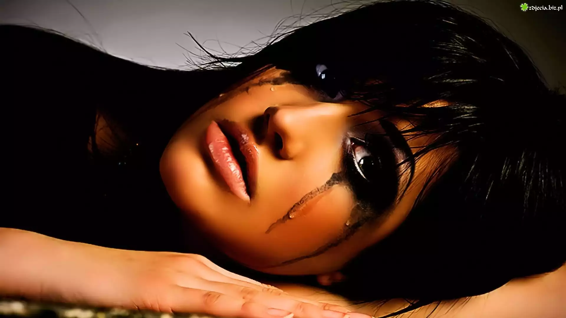 Zdjęcie Kobieta, Brunetka, Rozmazany, Makijaż, Łzy