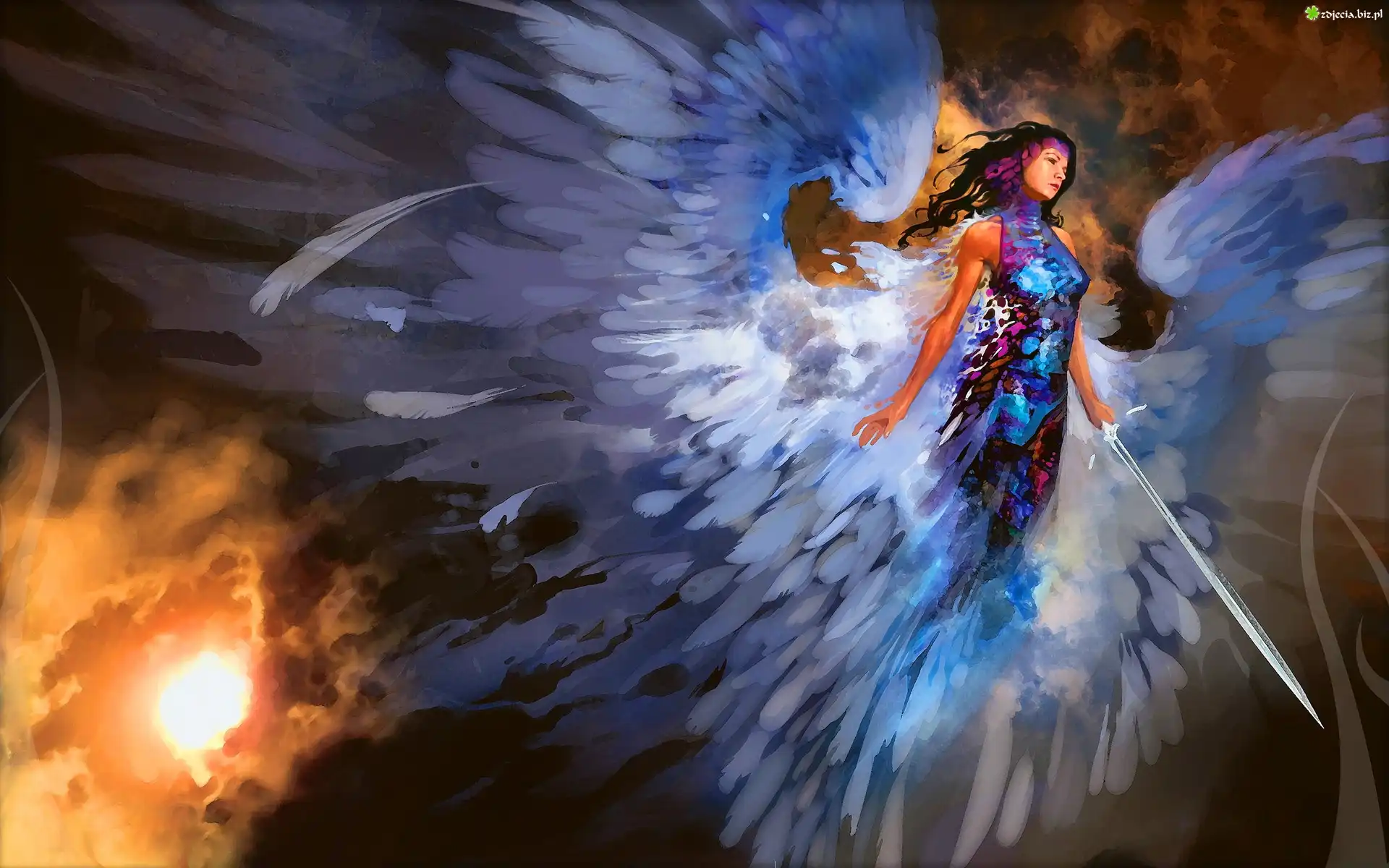 Zdjęcie Kobieta, Anioł, Miecz, Światło