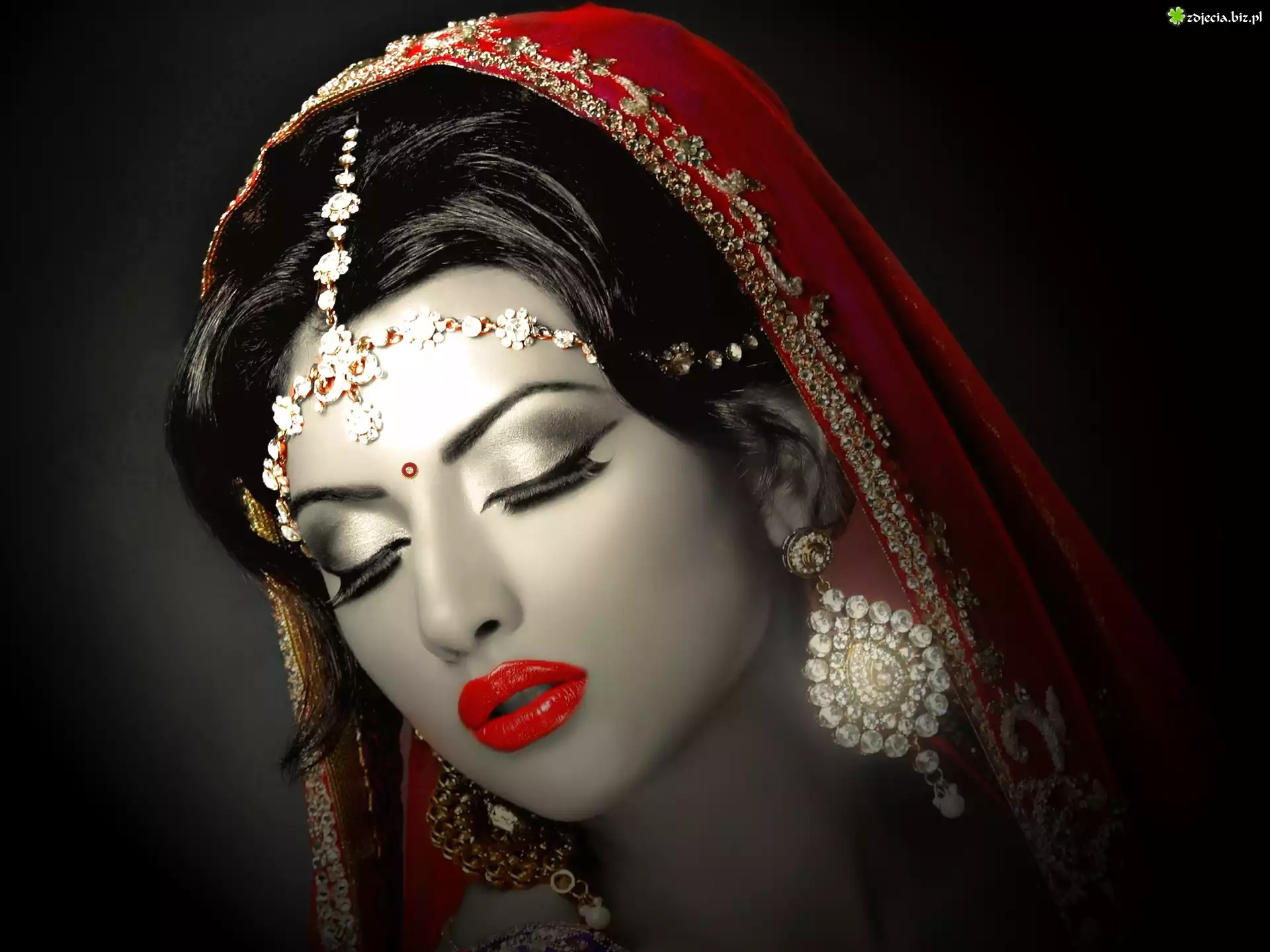 Zdjęcie Kobieta, Makijaż, Indiańska, Panna Młoda, Biżuteria