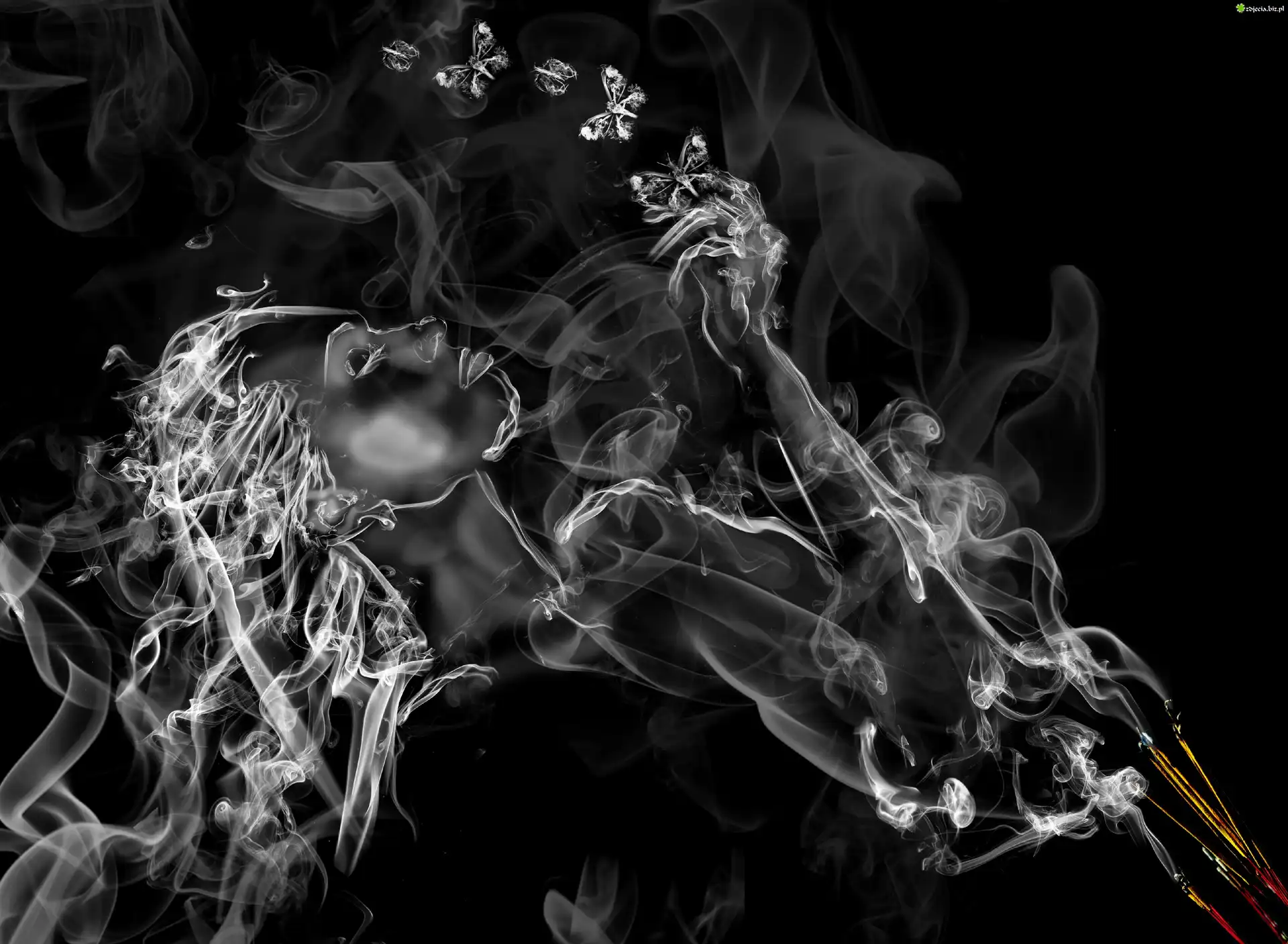 Zdjęcie Kobieta, Twarz, Motyle, Dym
