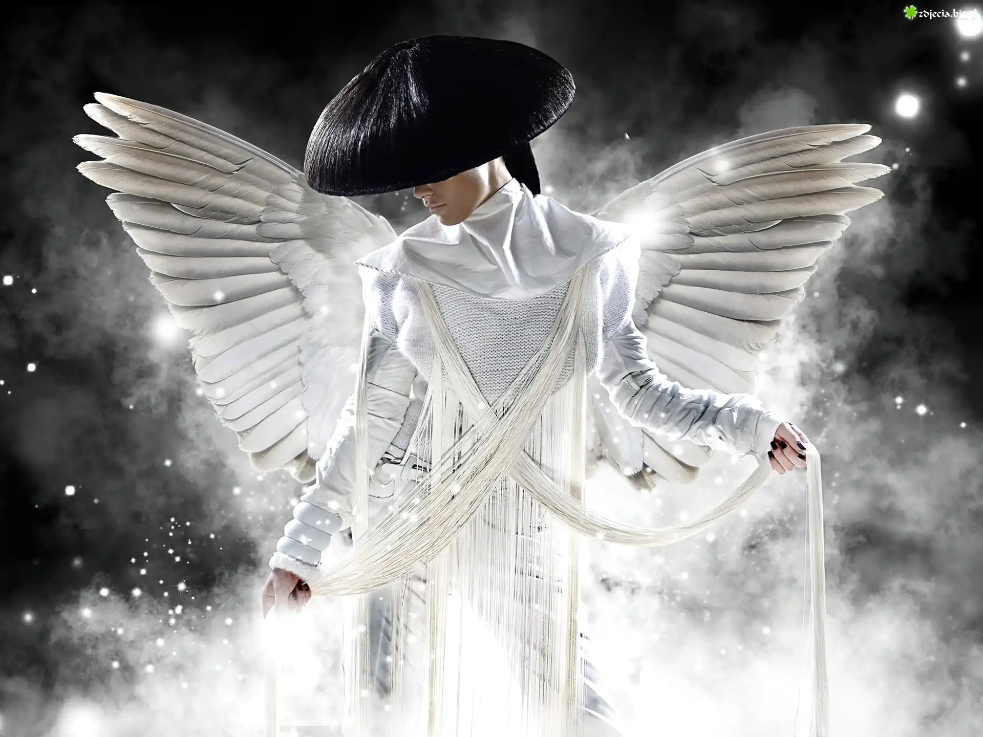 Zdjęcie Kobieta, Anioł, Czarne, Nakrycie, Głowy