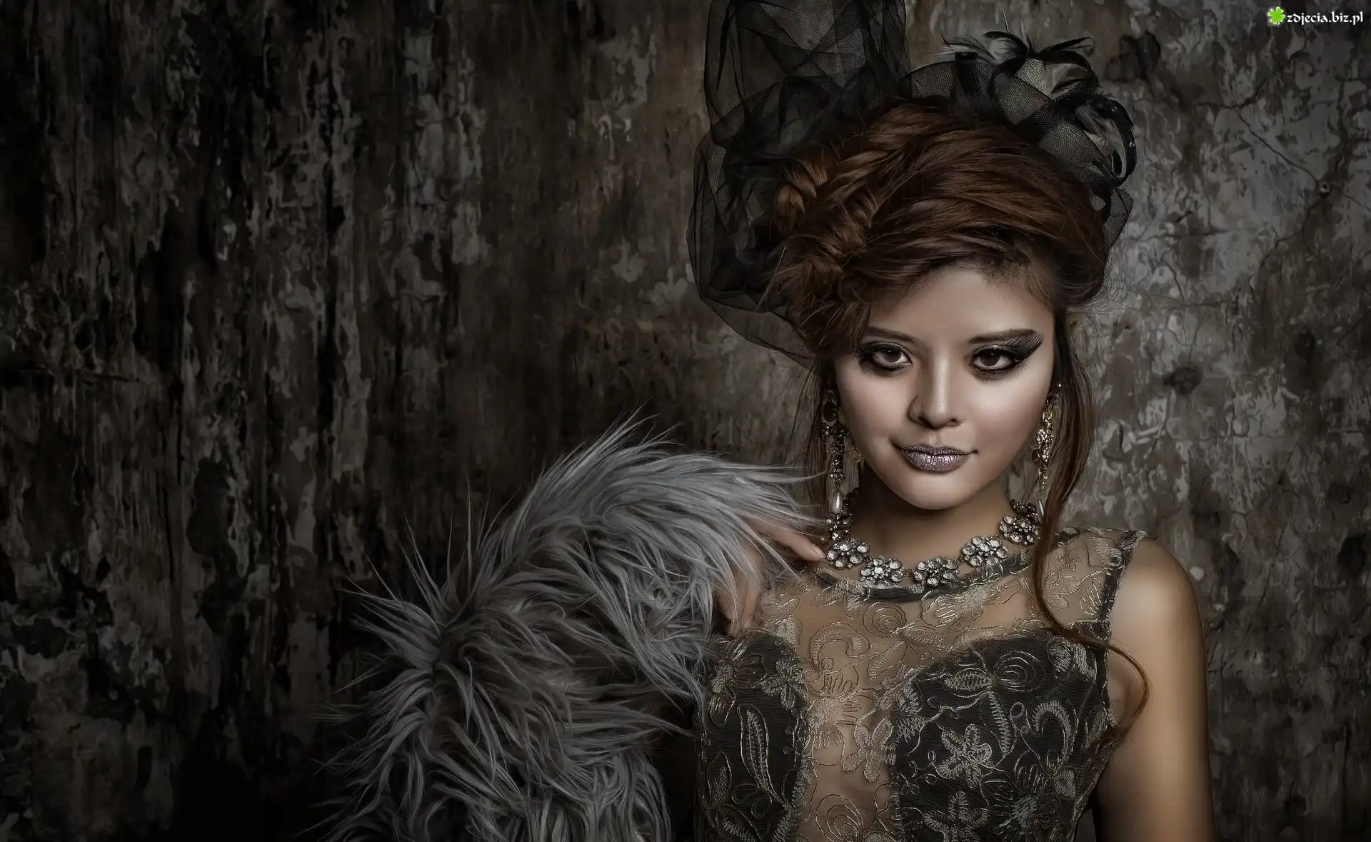 Zdjęcie Kobieta, Fryzura, Makijaż, Naszyjnik, Biżuteria