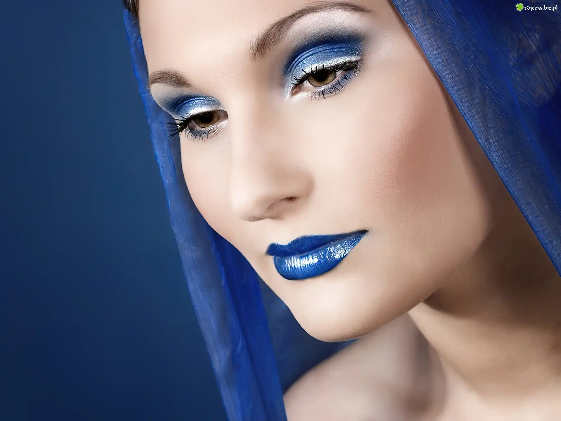 Zdjęcie, Kobieta, Makijaż, Niebieskie, Usta