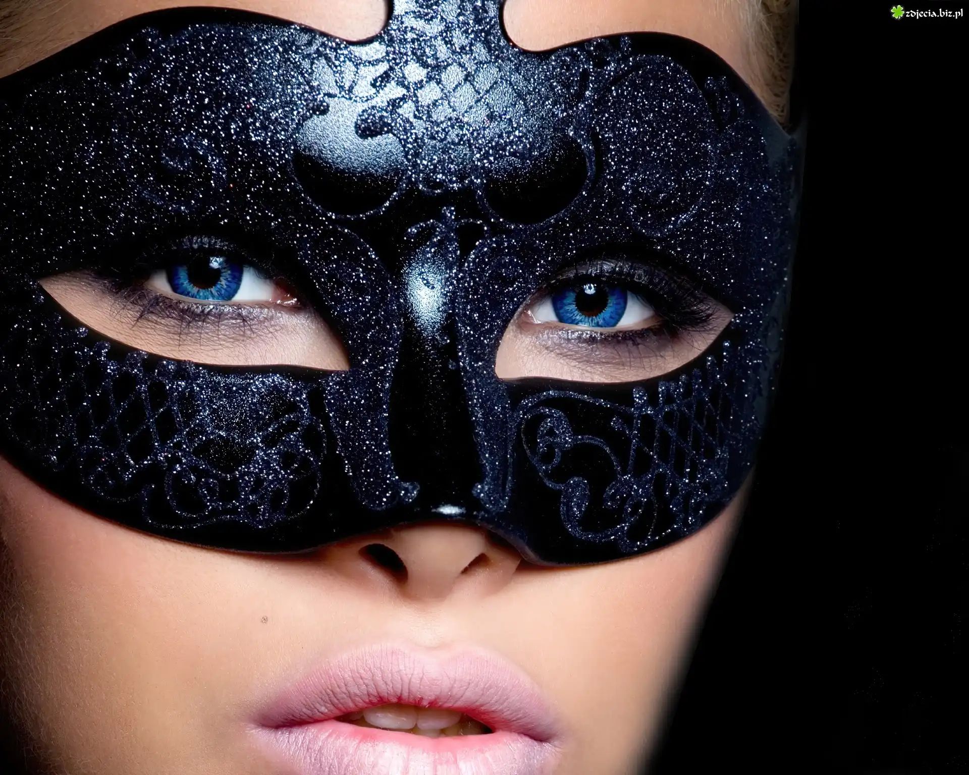 Zdjęcie Kobieta, Niebieskie, Oczy, Maska