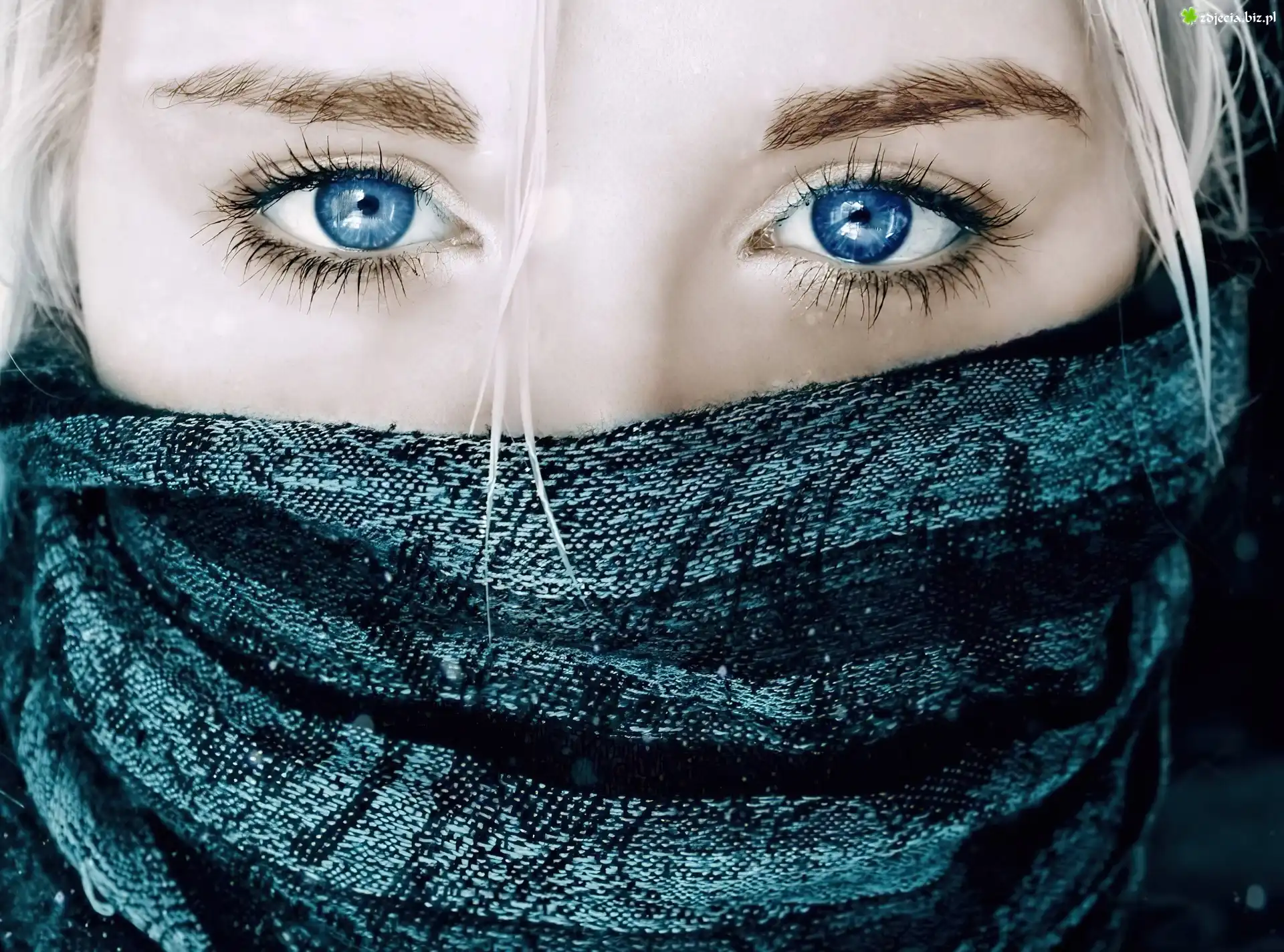 Zdjęcie Kobieta, Niebieskie, Oczy, Szal