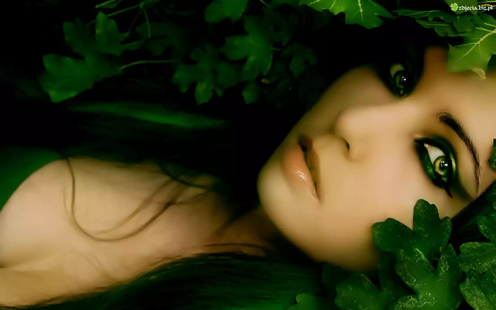 Zdjęcie Kobieta, Zielone, Oczy, Liście