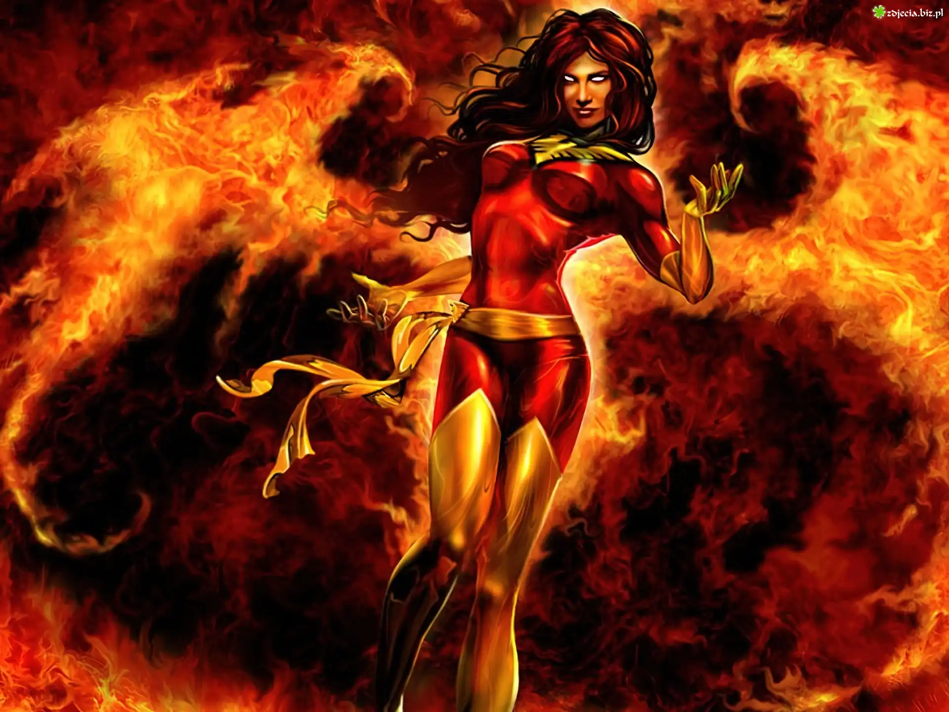Zdjęcie Kobieta, Feniks, Ogniste, Skrzydła