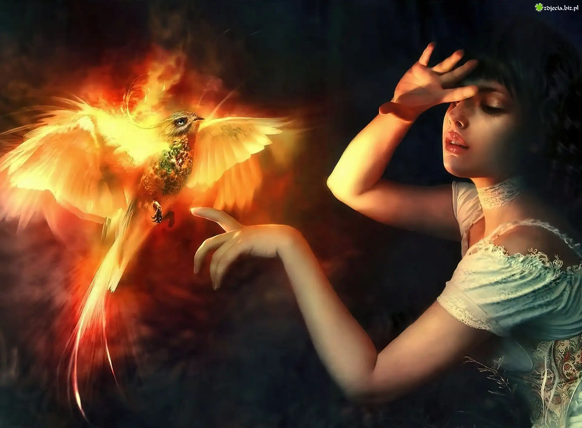 Zdjęcie Kobieta, Ręka, Ognisty, Ptak