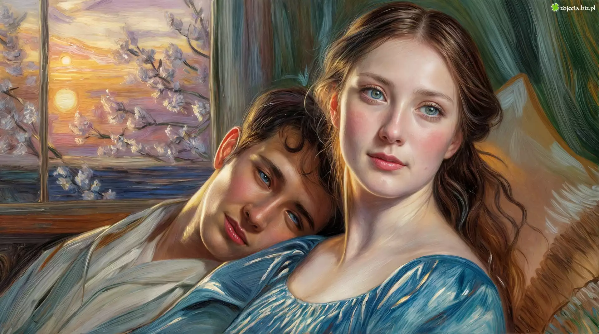 Zdjęcie Mężczyzna, Kobieta, Okno, Drzewa, Grafika