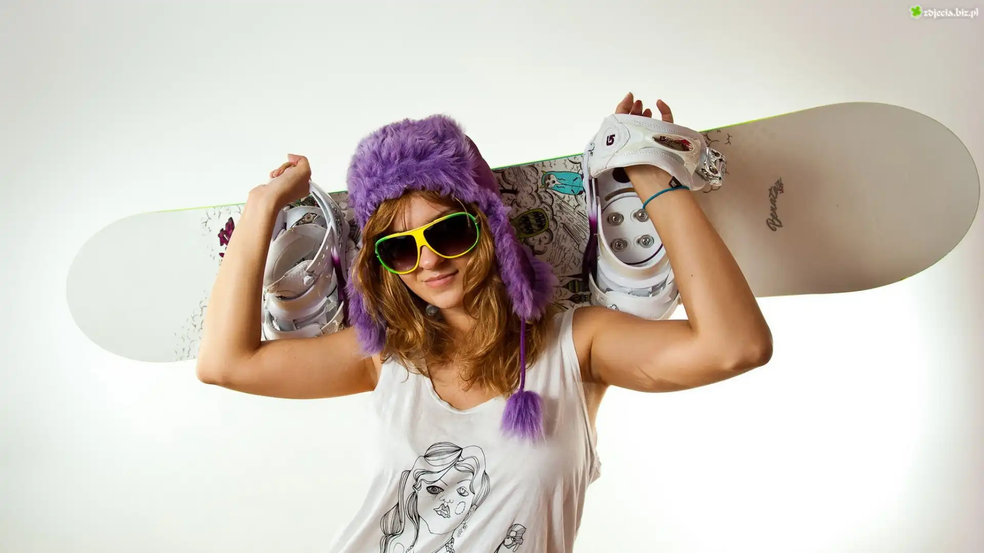 Zdjęcie Kobieta, Czapka, Okulary, Snowbording