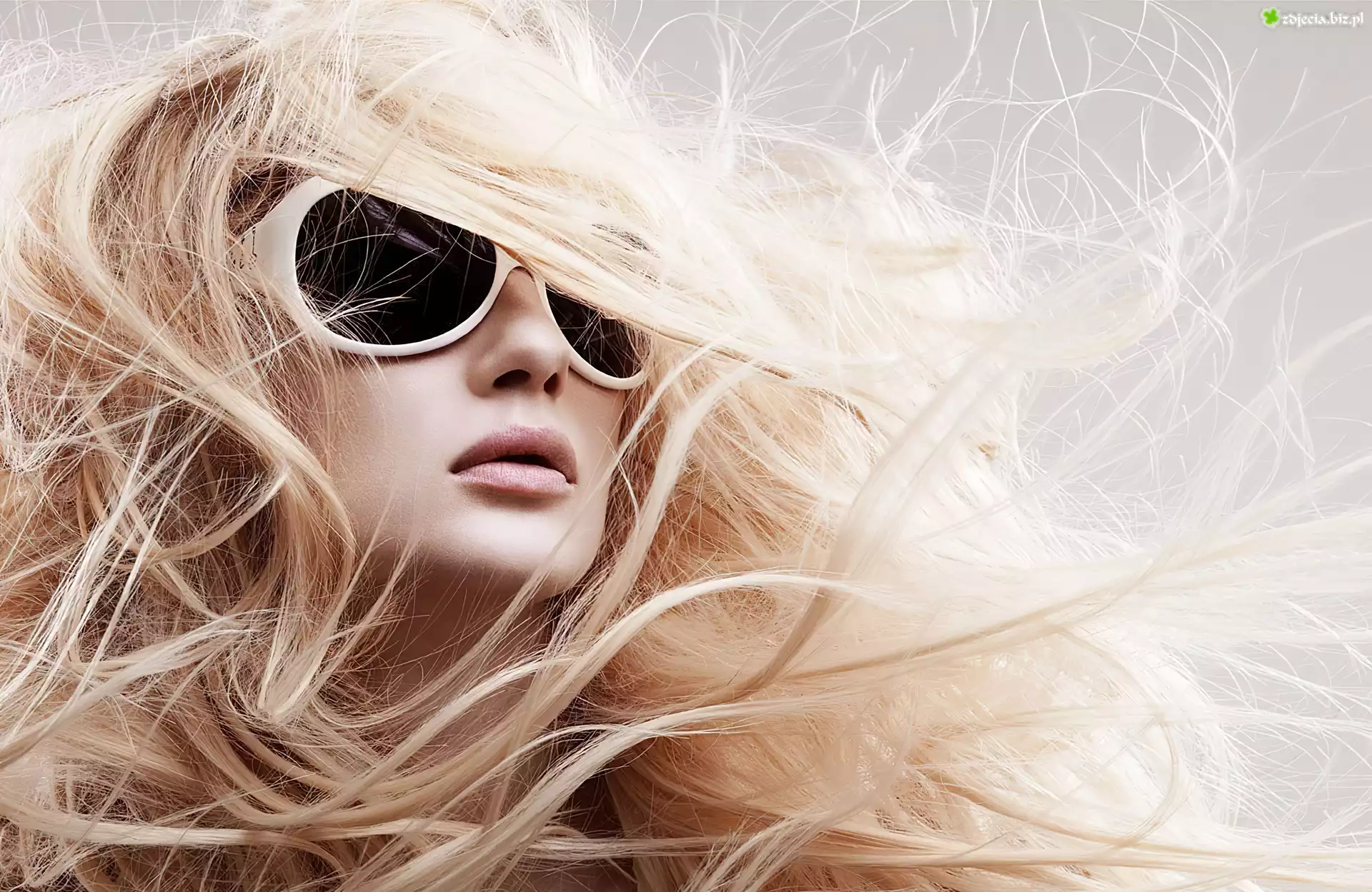 Zdjęcie Kobieta, Włosy, Wiatr, Okulary, Usta