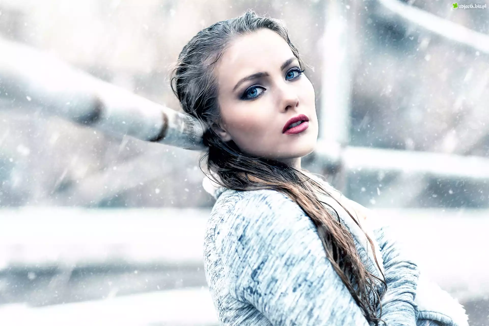 Zdjęcie Kobieta, Makijaż, Padający, Śnieg
