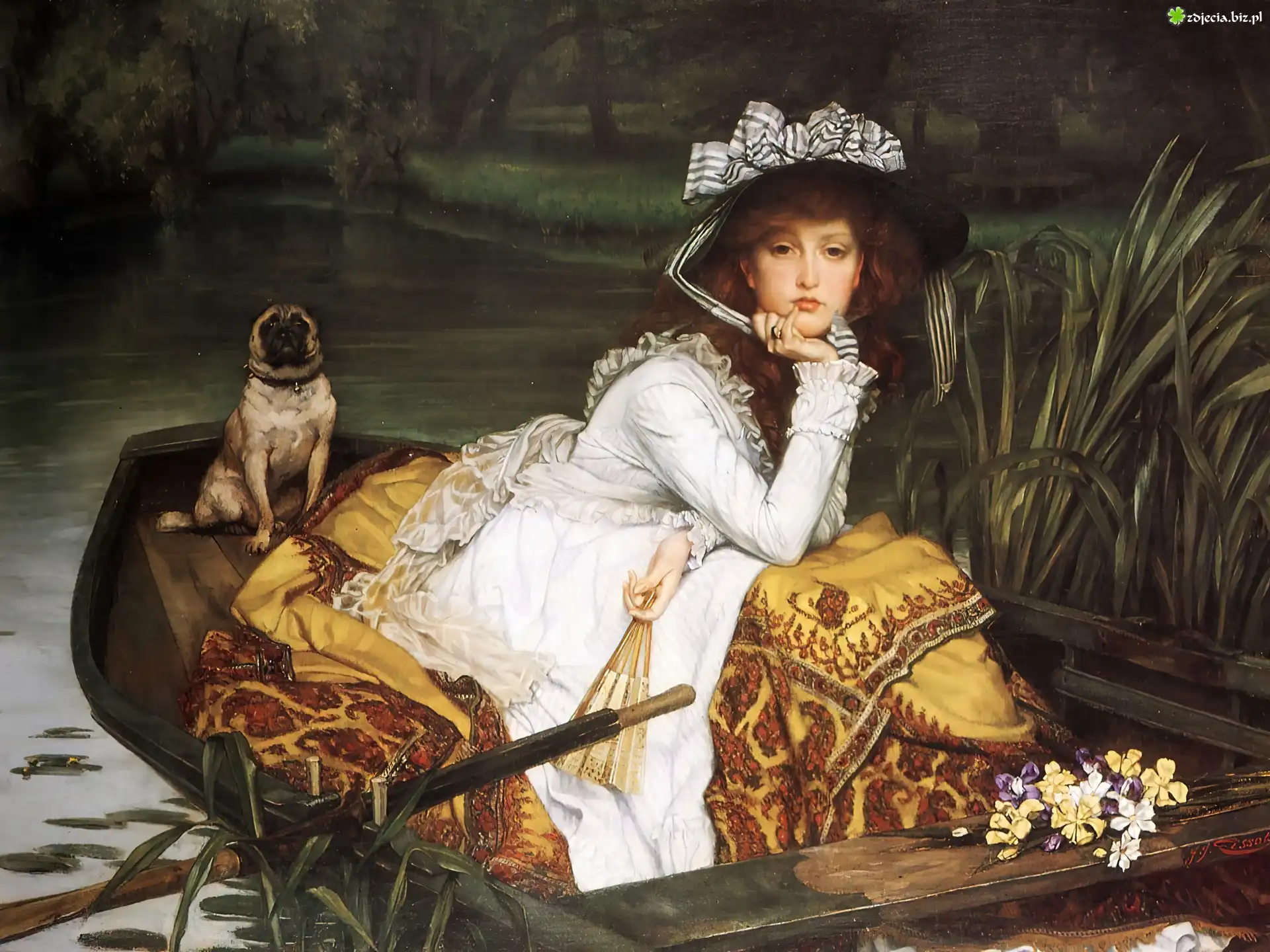 Zdjęcie Kobieta, Łódka, Pies, Jezioro