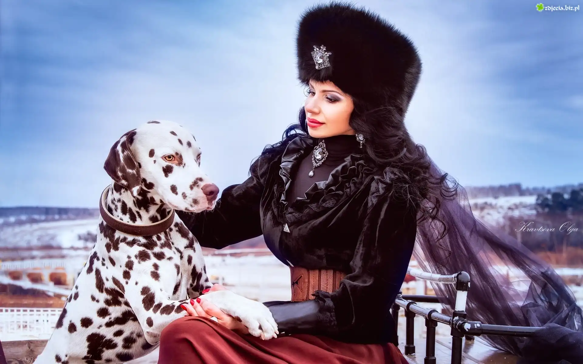 Zdjęcie Kobieta, Moda, Styl, Pies, Dalmatyńczyk
