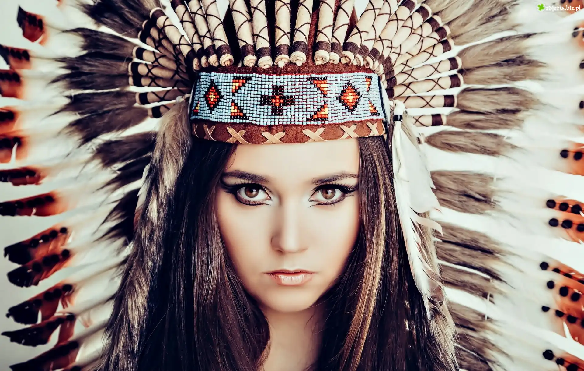 Zdjęcie Kobieta, Twarz, Pióropusz, Indianka